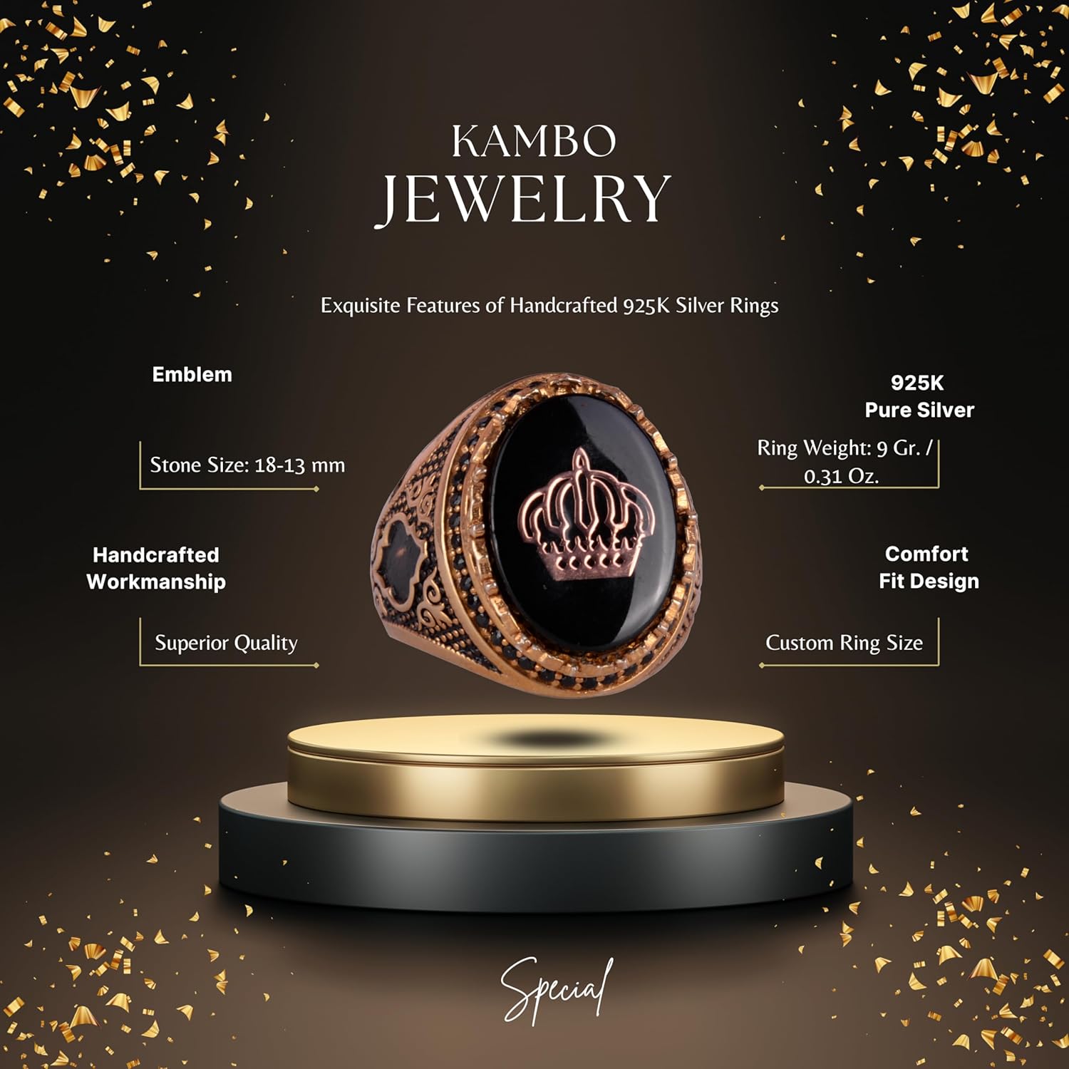 Erkekler için Taç Yüzük - 925 Ayar Gümüş Altın Kaplama Erkek Yüzük