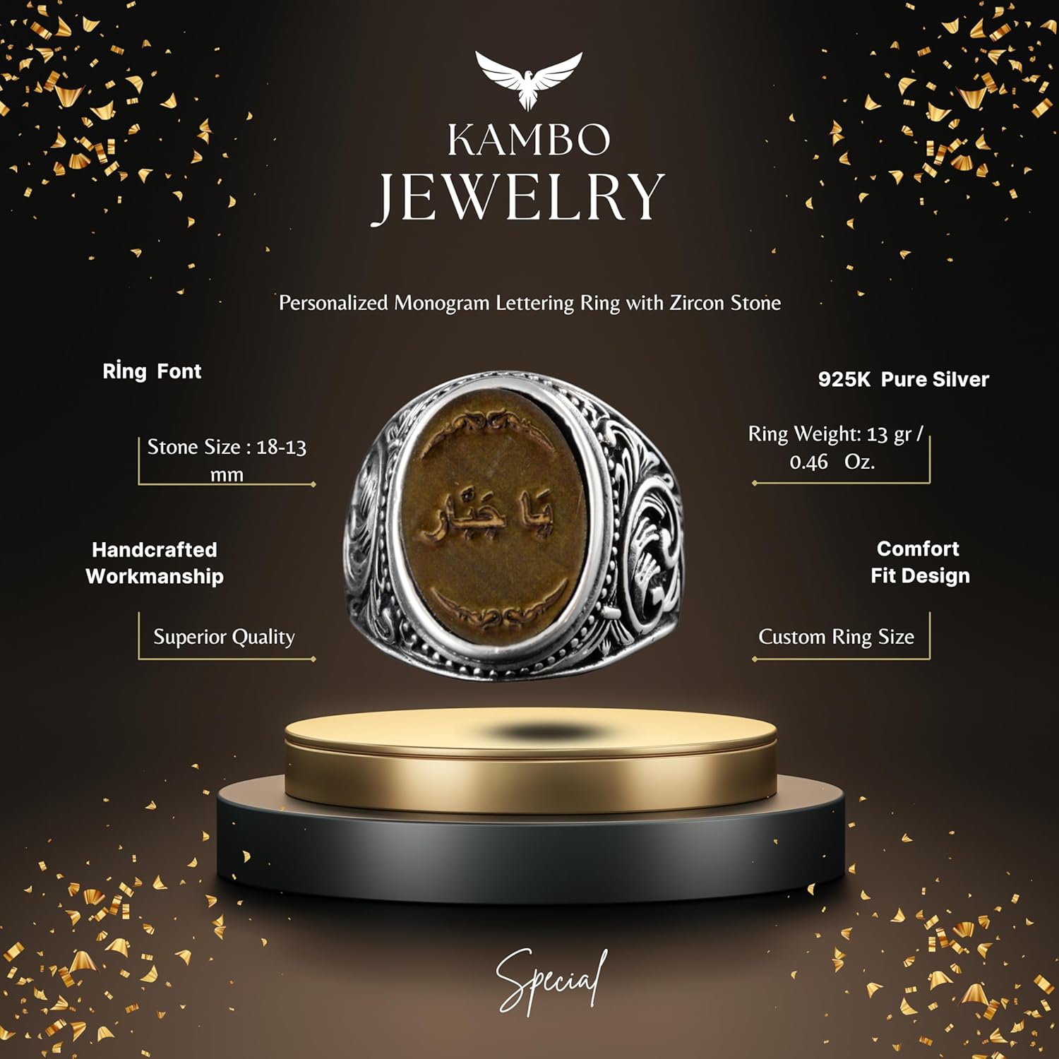 Erkekler için Vintage Arap Yazılı Yüzük, 925 Ayar Gümüş El Yapımı İfadeli Yüzük, Orta Doğu Tasarımı