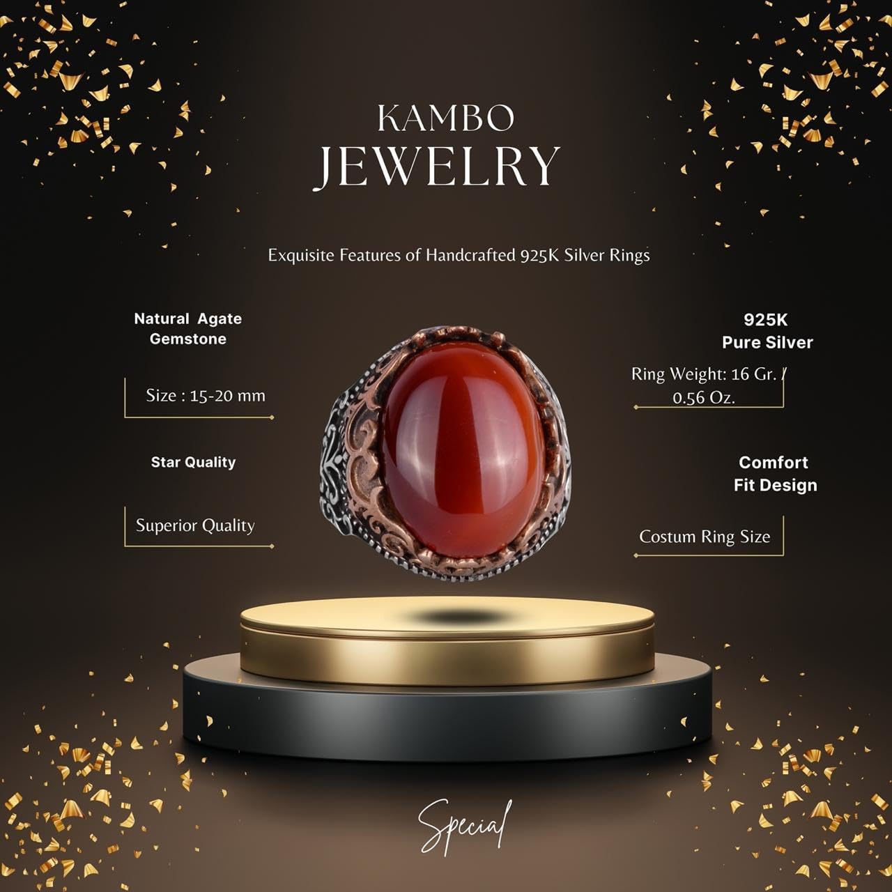 Gerçek Doğal Agate Taşlı Yüzük, 925 Ayar Gümüş Yüzük Erkekler İçin, İslami Gümüş Yüzük