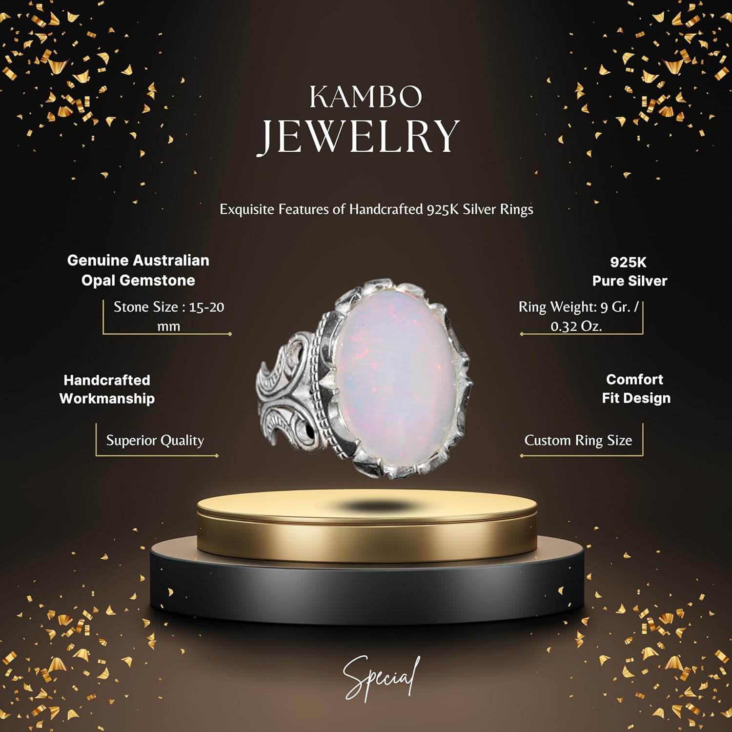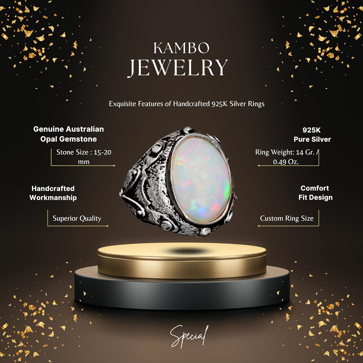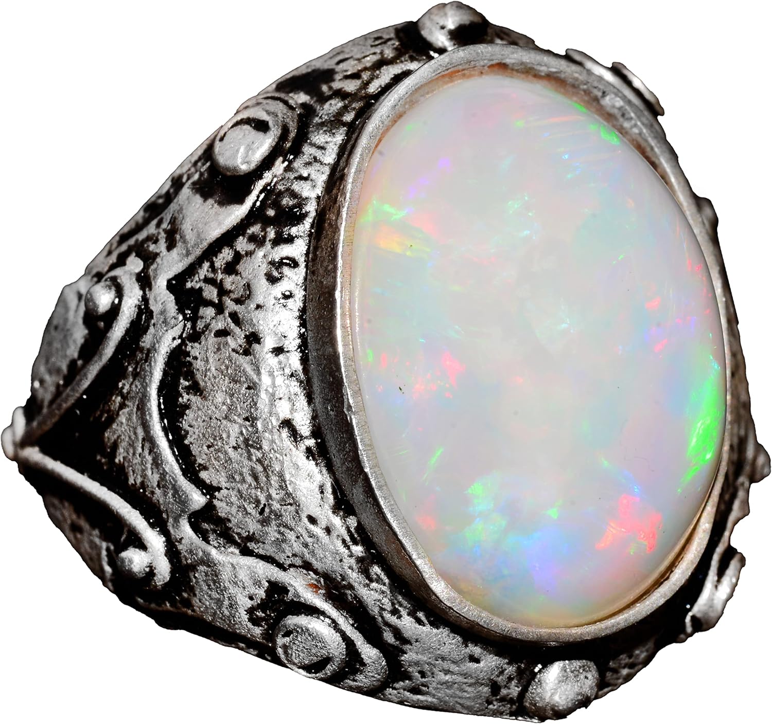 Gerçek Avustralya Opali Gerçek Taş Yüzük - 10.00 Karat Özel Erkek Yüzüğü - 925 Ayar Gümüş Yüzük
