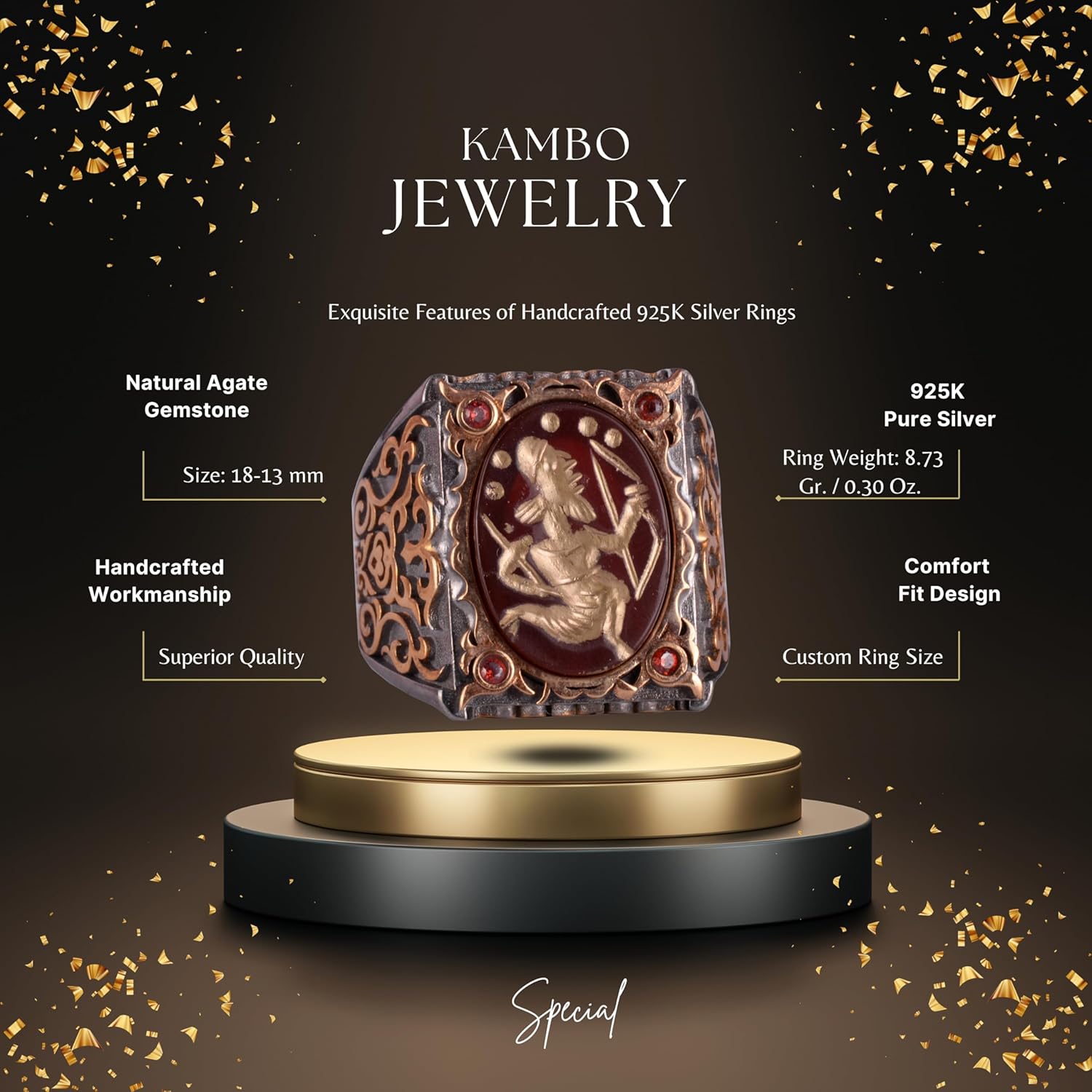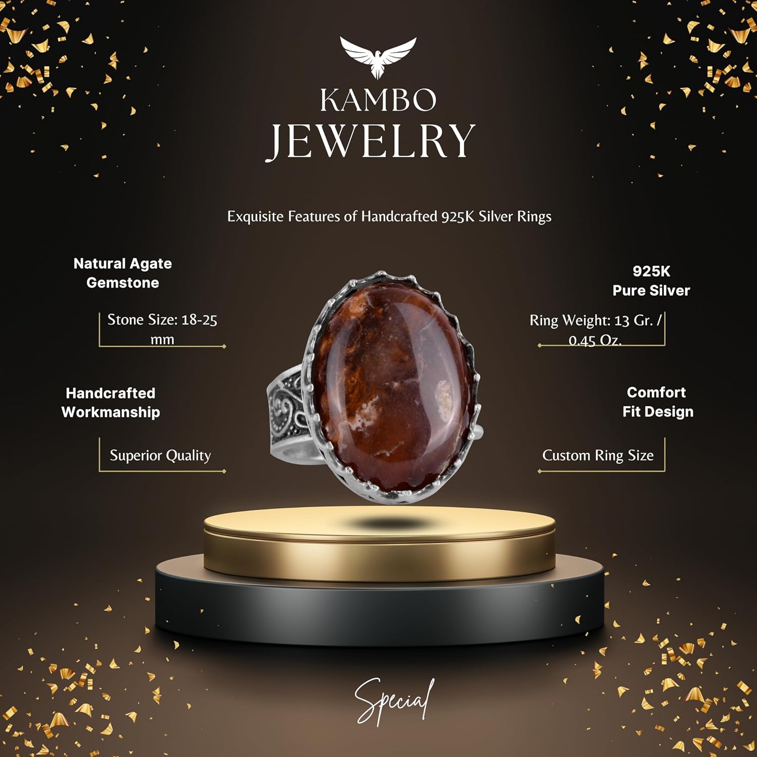 Gerçek Doğal Agat Taşı Yüzük, 925 Ayar Gümüş Yüzük, Erkek Sultan Yüzüğü