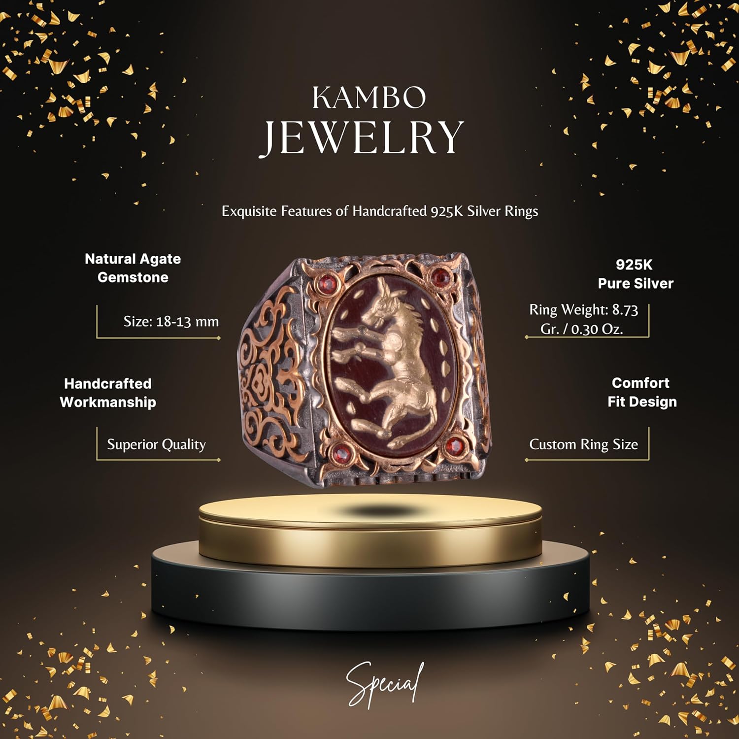 Gerçek Doğal Agat Taşından At Yüzüğü - Oymalı ve Gravürlü Taş 925 Ayar Gümüş Erkek Yüzüğü