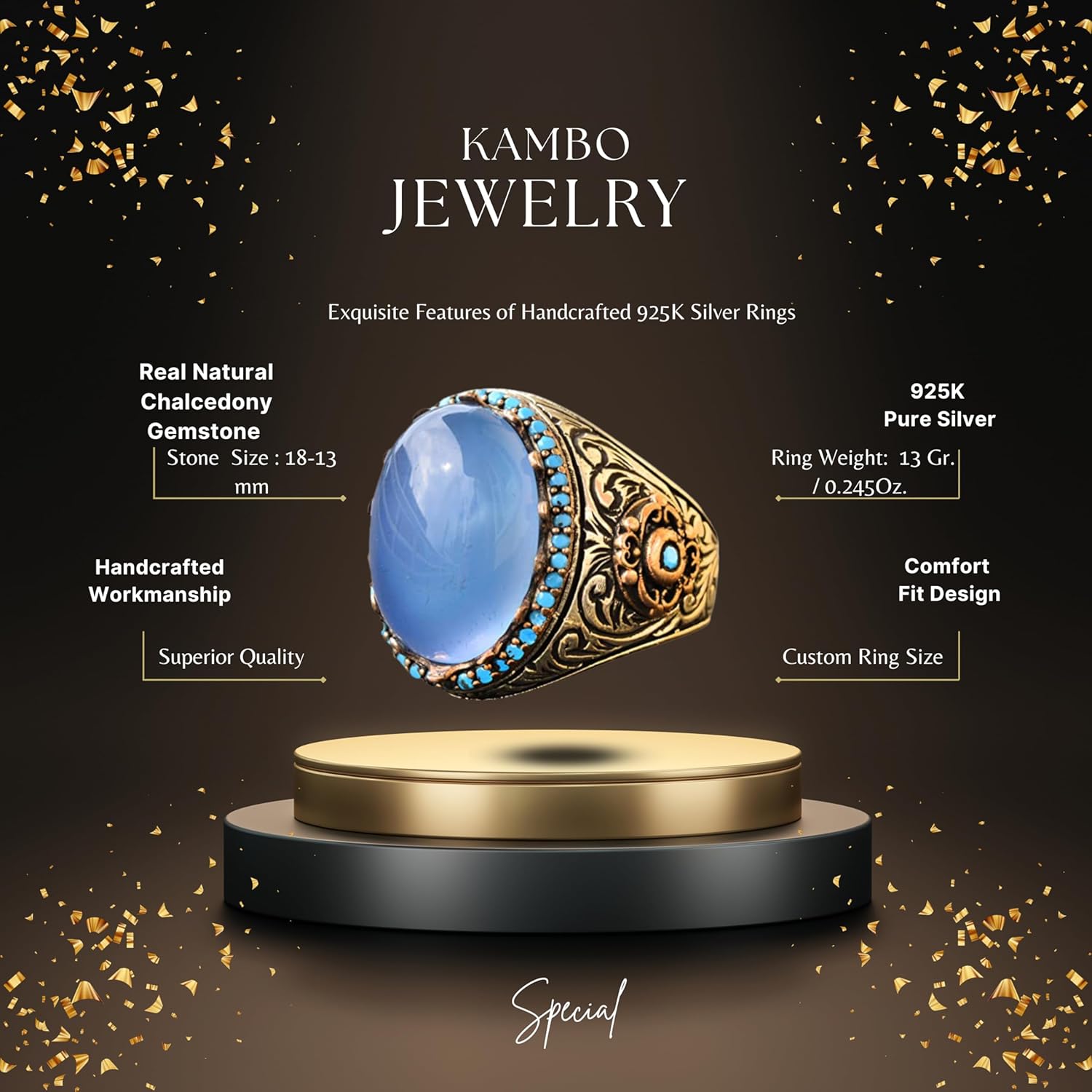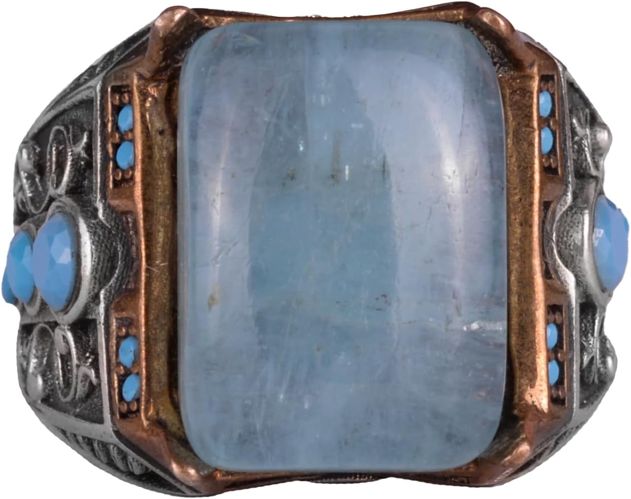 Gerçek Doğal Akuamarin Taşlı Yüzük, El Yapımı Şık Yüzük, 925 Ayar Gümüş Yüzük Erkekler İçin