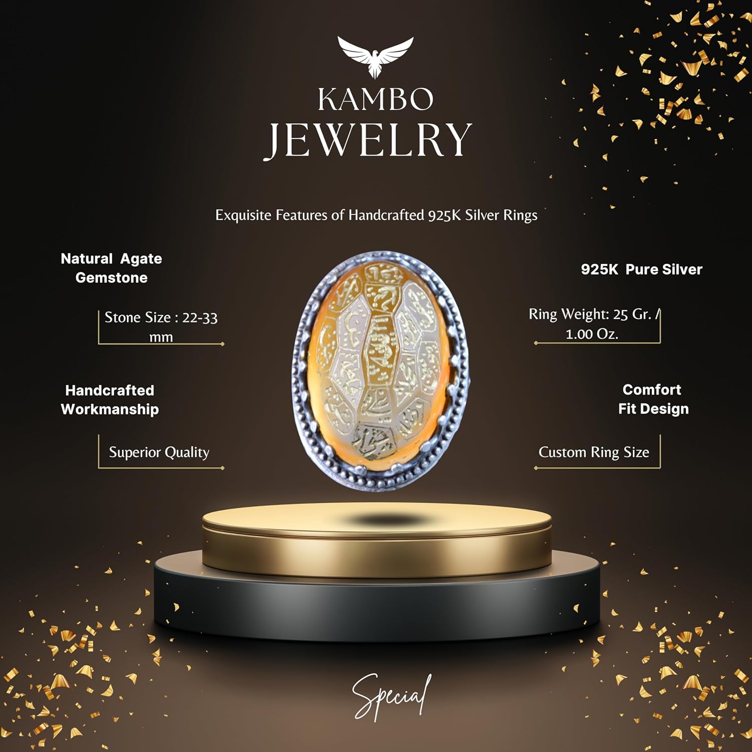 Gerçek Doğal Akik Taşlı Yüzük, 925 Ayar Gümüş Erkek Yüzük, İslami Yüzük (Özelleştirilebilir)