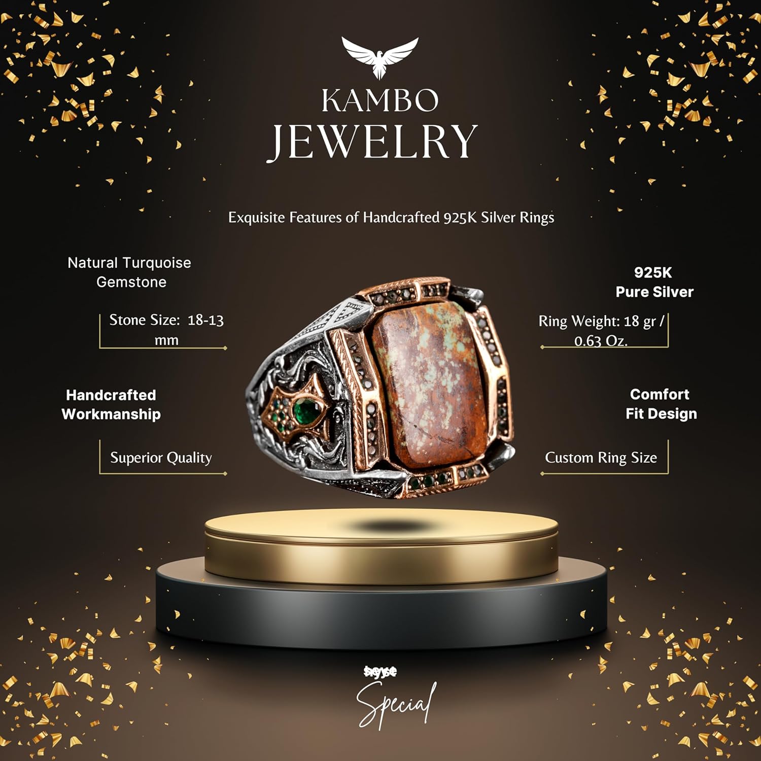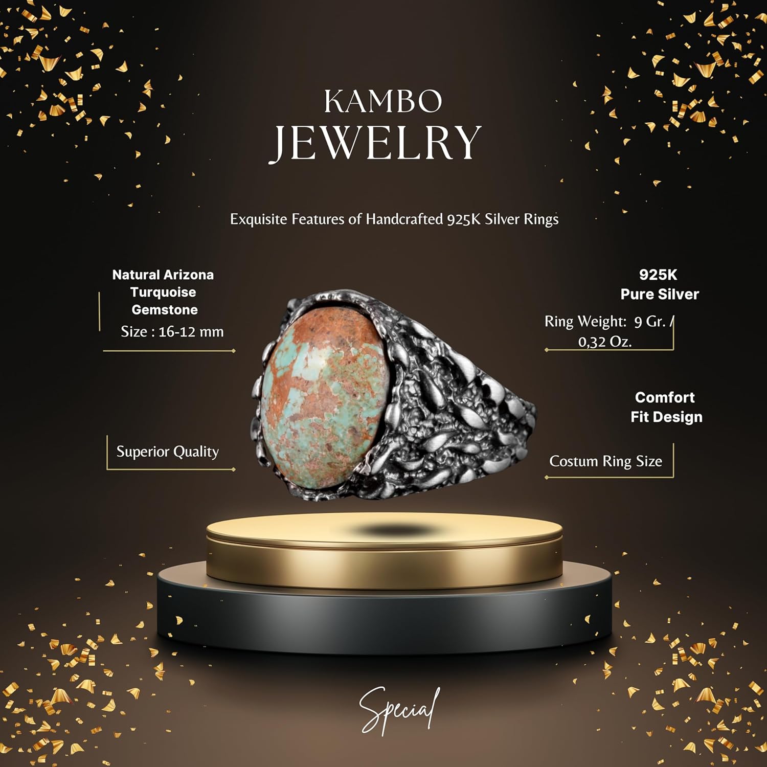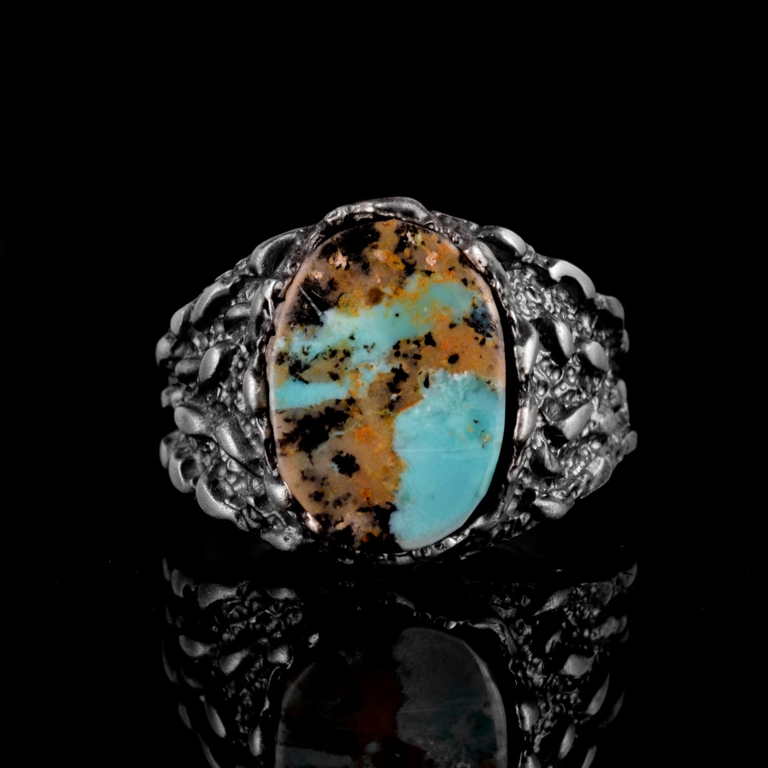 Gerçek Doğal Arizona Turkuaz Taş Yüzük, Erkekler İçin 925 Ayar Gümüş Yüzük