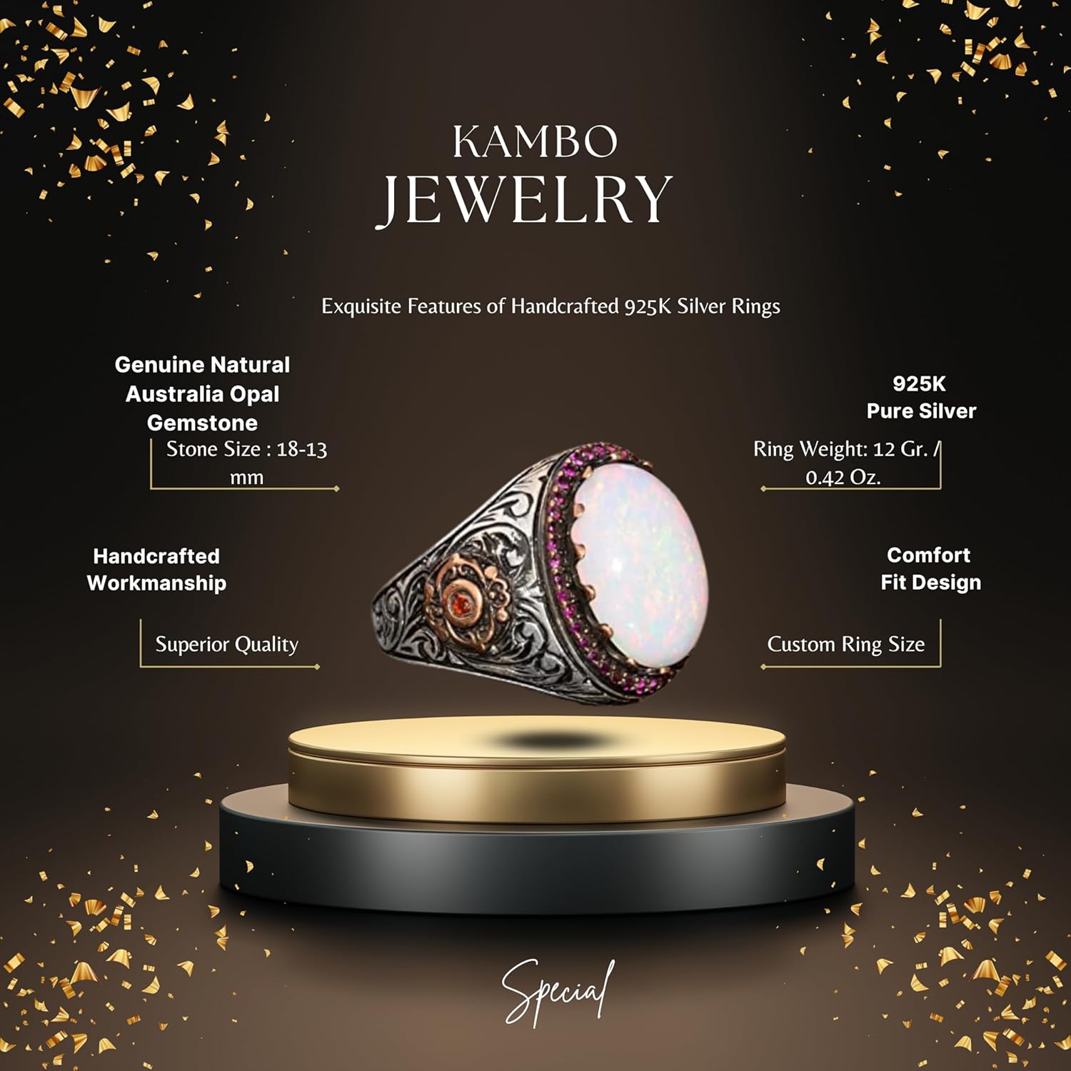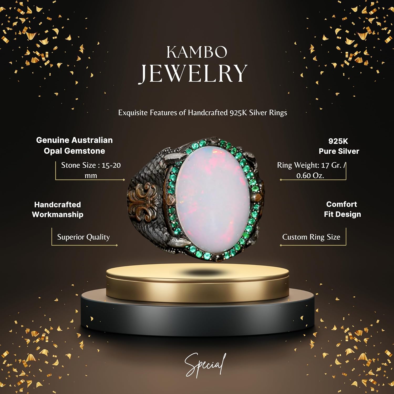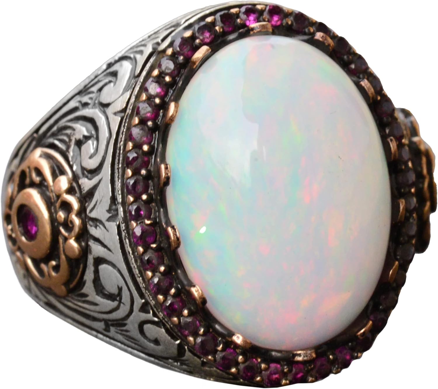 Gerçek Doğal Avustralya Opali Gerçek 10.00 Karat Taş Yüzük - Özel Erkek Yüzüğü - Sterlin Gümüş Büyük Yüzük