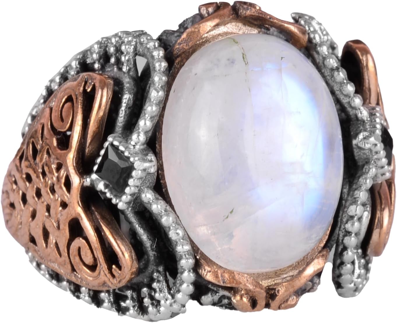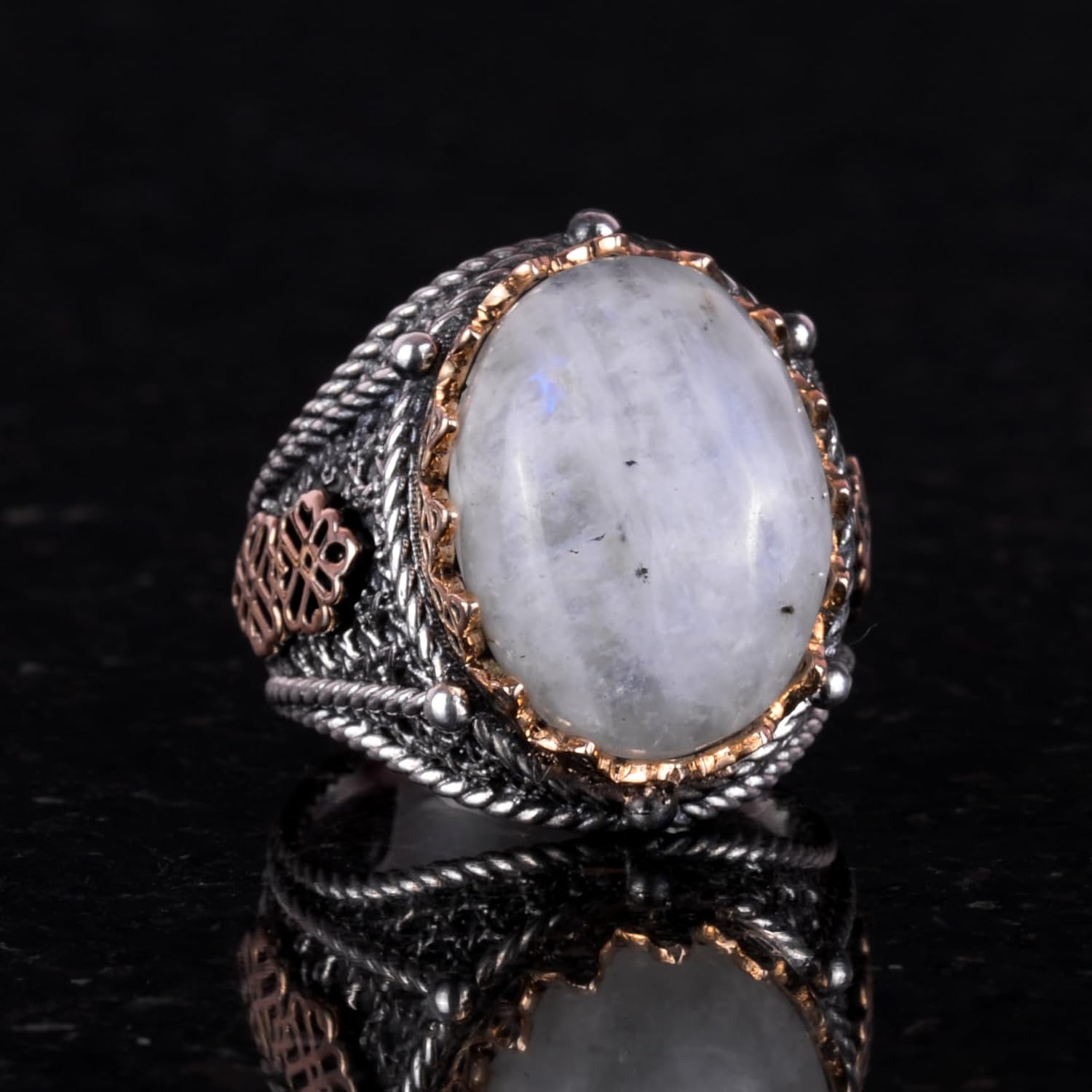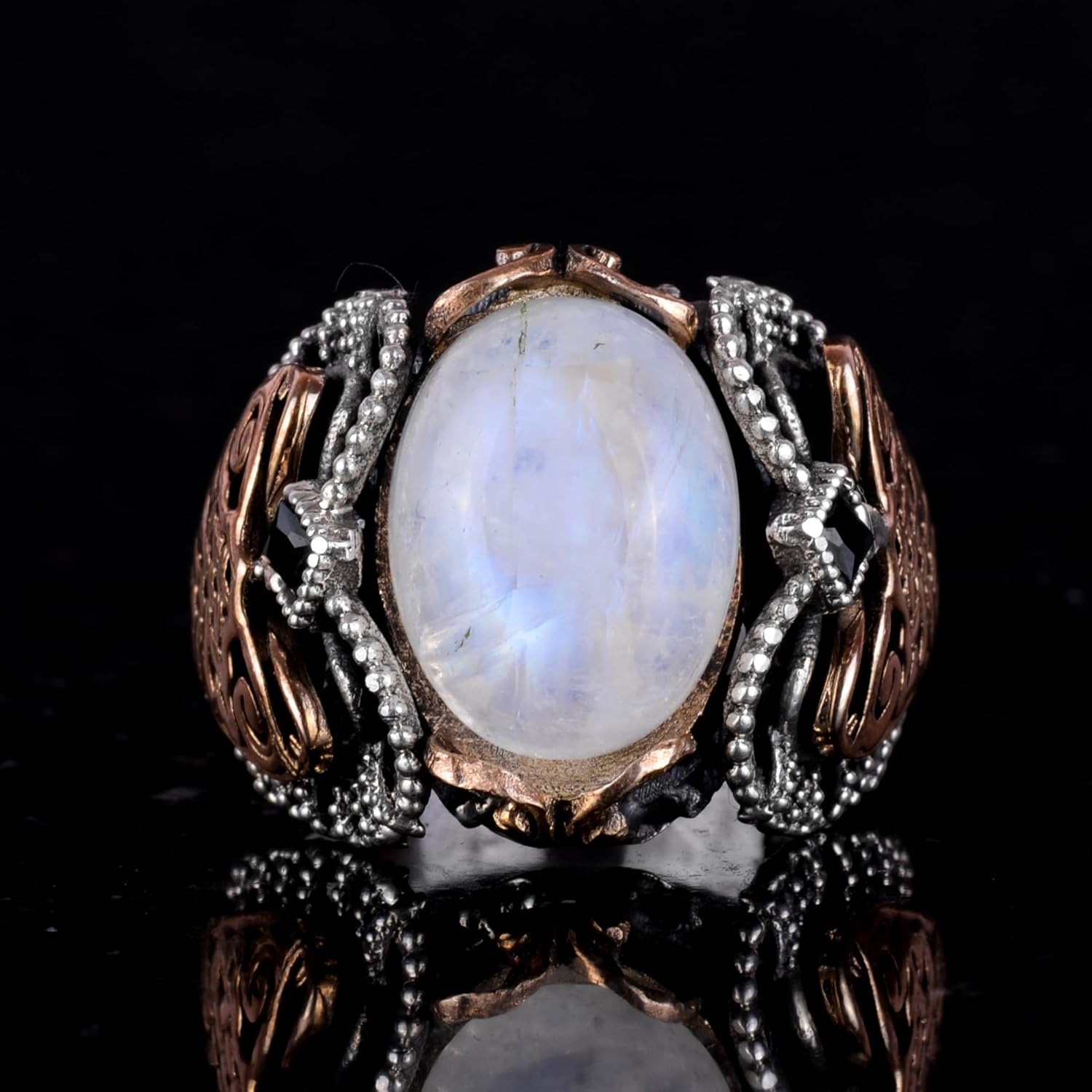 Gerçek Doğal Ay Taşı Taş Yüzük, 925 Ayar Katı Gümüş Erkek Yüzüğü, Ay Işığı Tasarımı