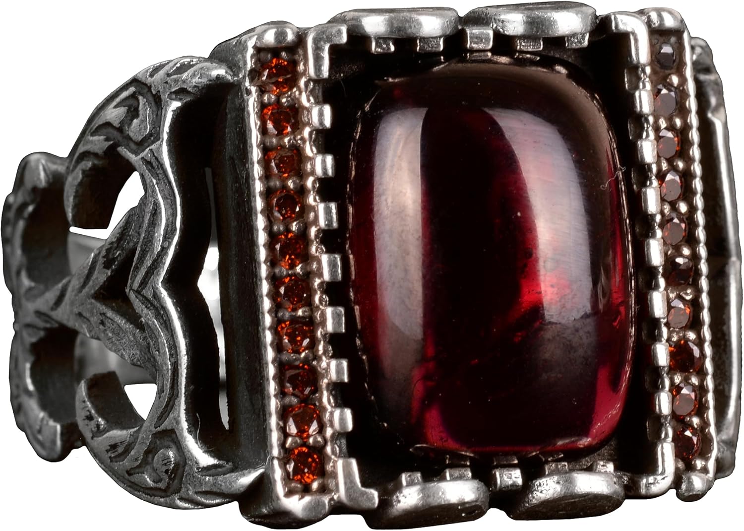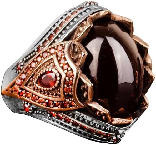 Gerçek Doğal Granat Taşlı Yüzük, 925 Ayar Saf Gümüş Yüzük Erkekler İçin
