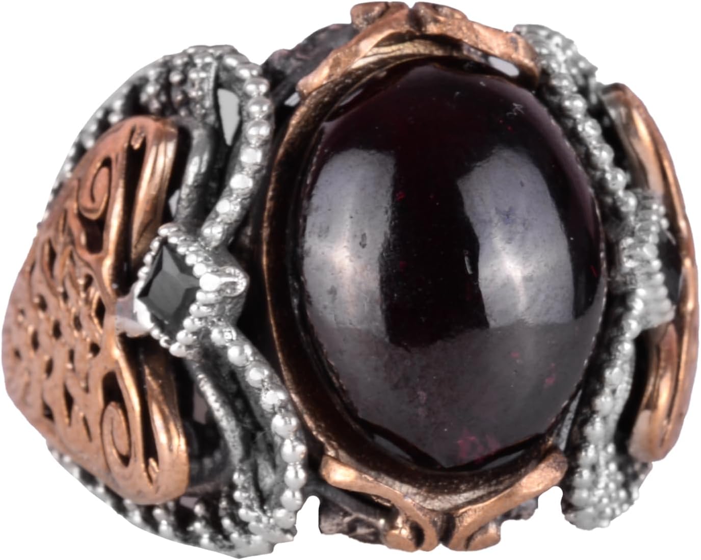Gerçek Doğal Granat Taşlı Yüzük, Kral Yüzüğü, 925 Ayar Gümüş Yüzük