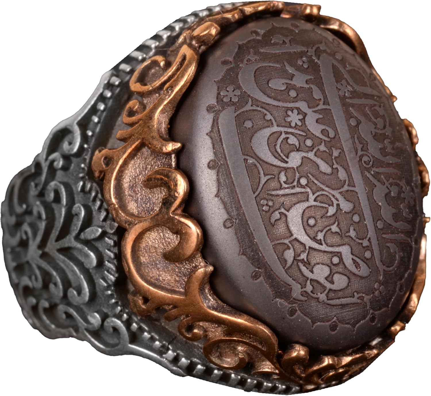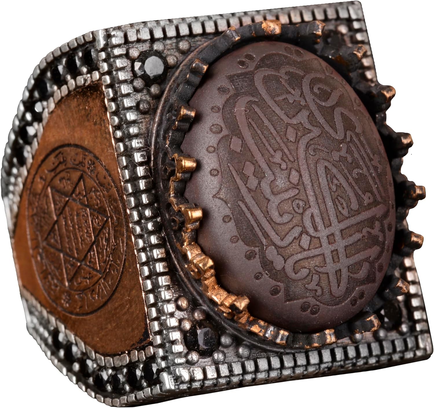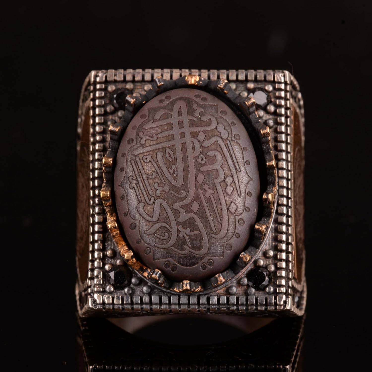 Gerçek Doğal Hematit Taşı Yüzük, İslami Yüzük, 925 Ayar Gümüş Yüzük Erkekler İçin