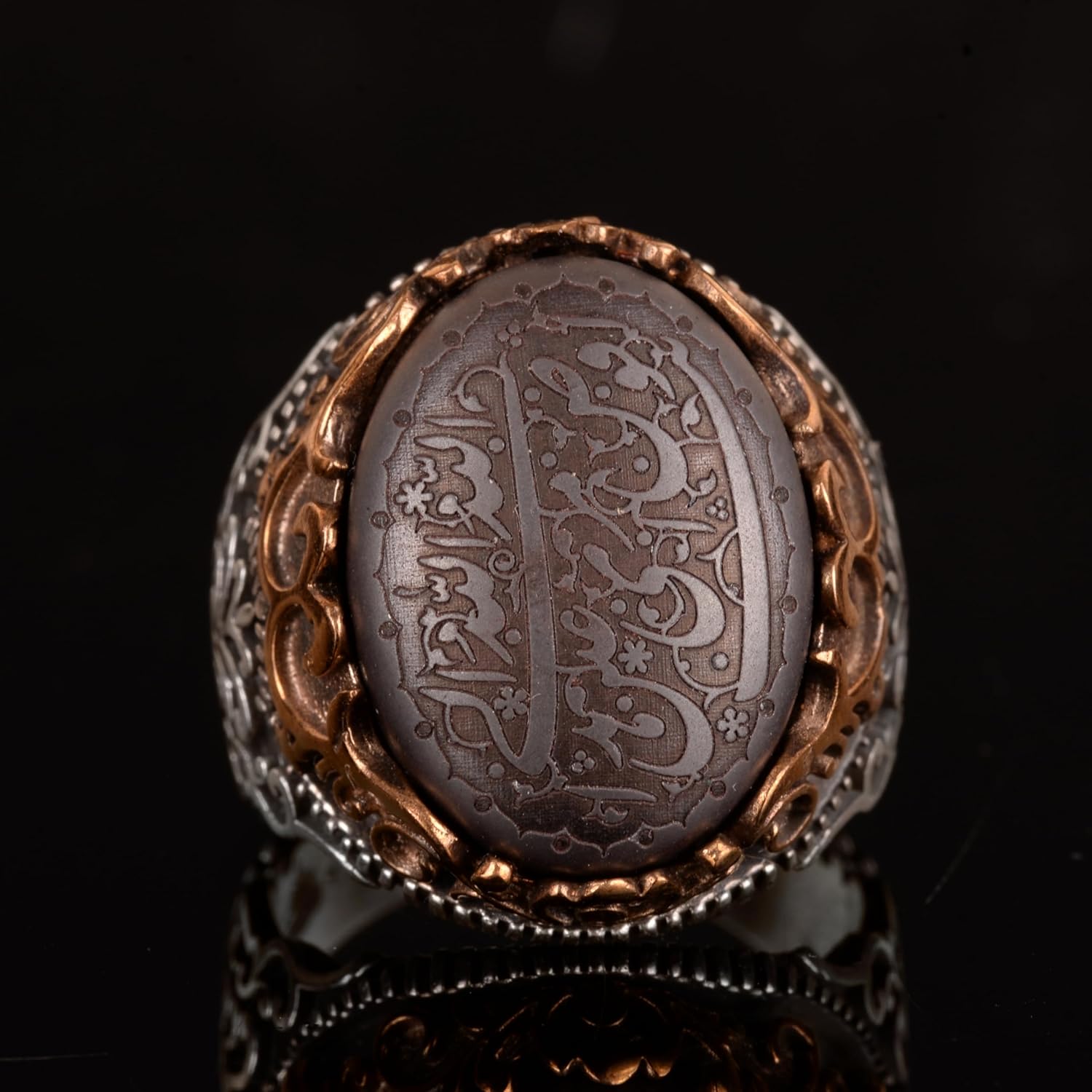 Gerçek Doğal Hematit Taş Yüzük, 925 Ayar Sterlin Gümüş Erkek Yüzük, İslami Yüzük