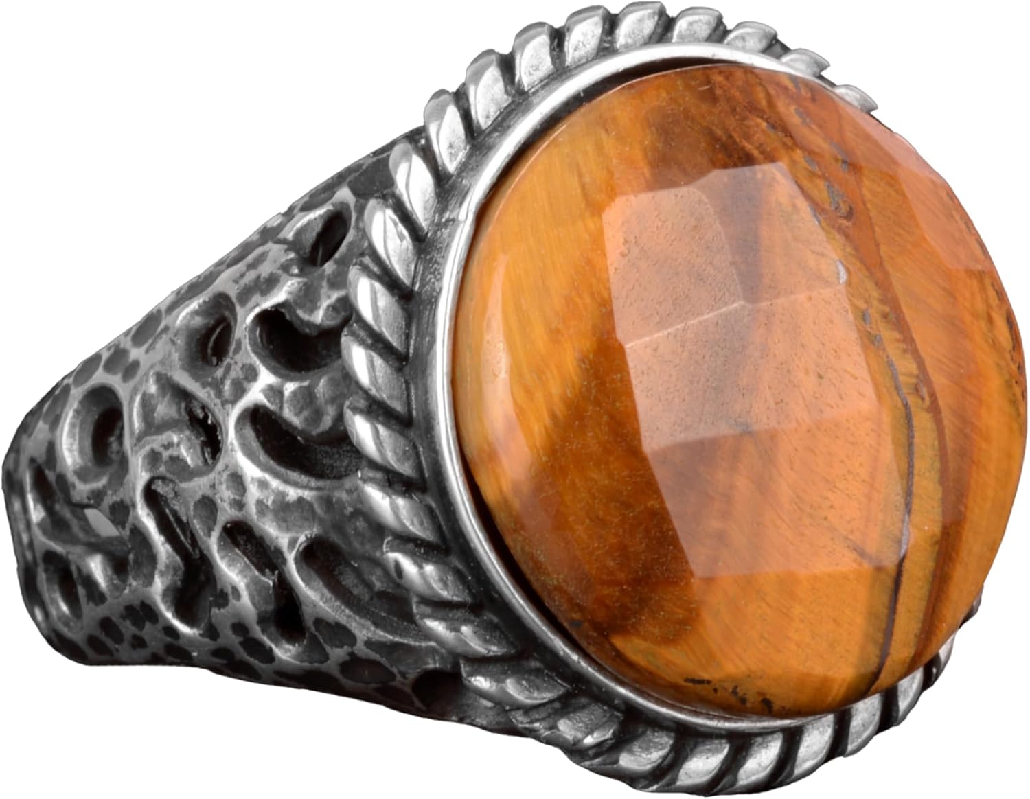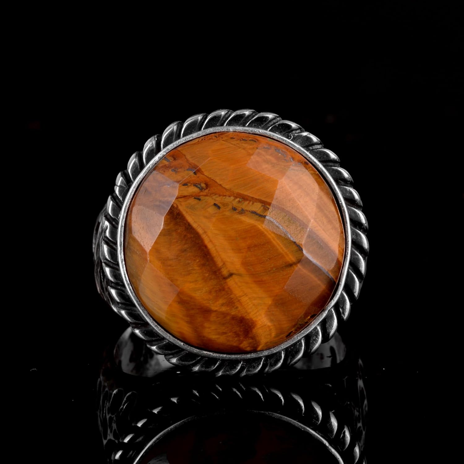 Gerçek Doğal Kaplan Gözü Taşı Yüzük, 925 Ayar Gümüş Erkek Yüzük