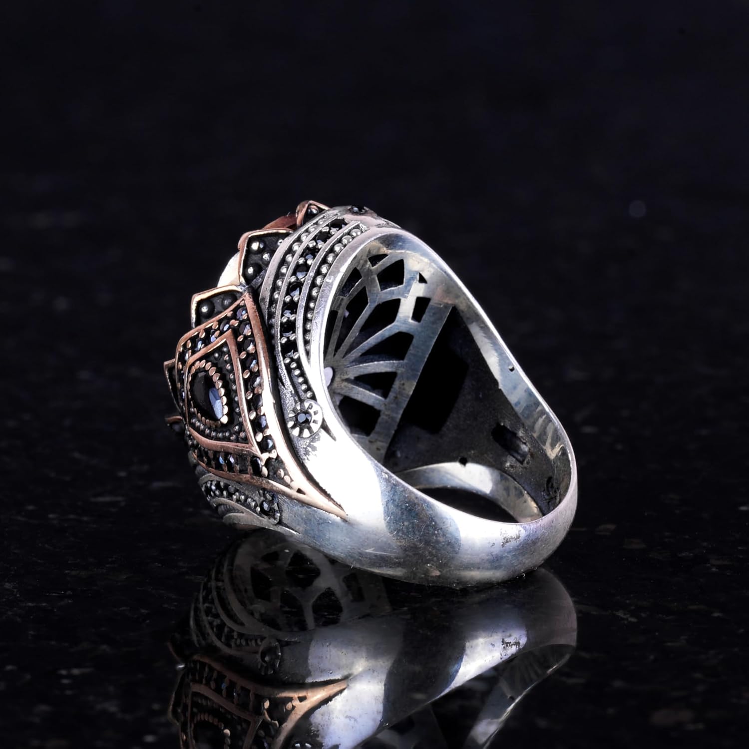 Kişiselleştirilebilir Monogram Oniks Taşlı Yüzük - 925 Ayar Gümüş Kişisel Yüzük Erkekler İçin