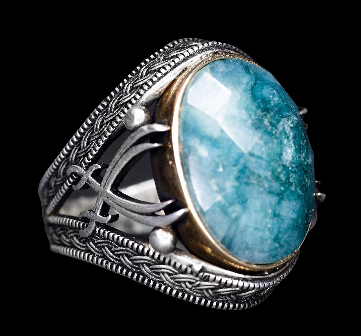 Kılıç Yüzüğü, 925 Ayar Gümüş Yüzük, Doğal Zümrüt Taşlı Yüzük