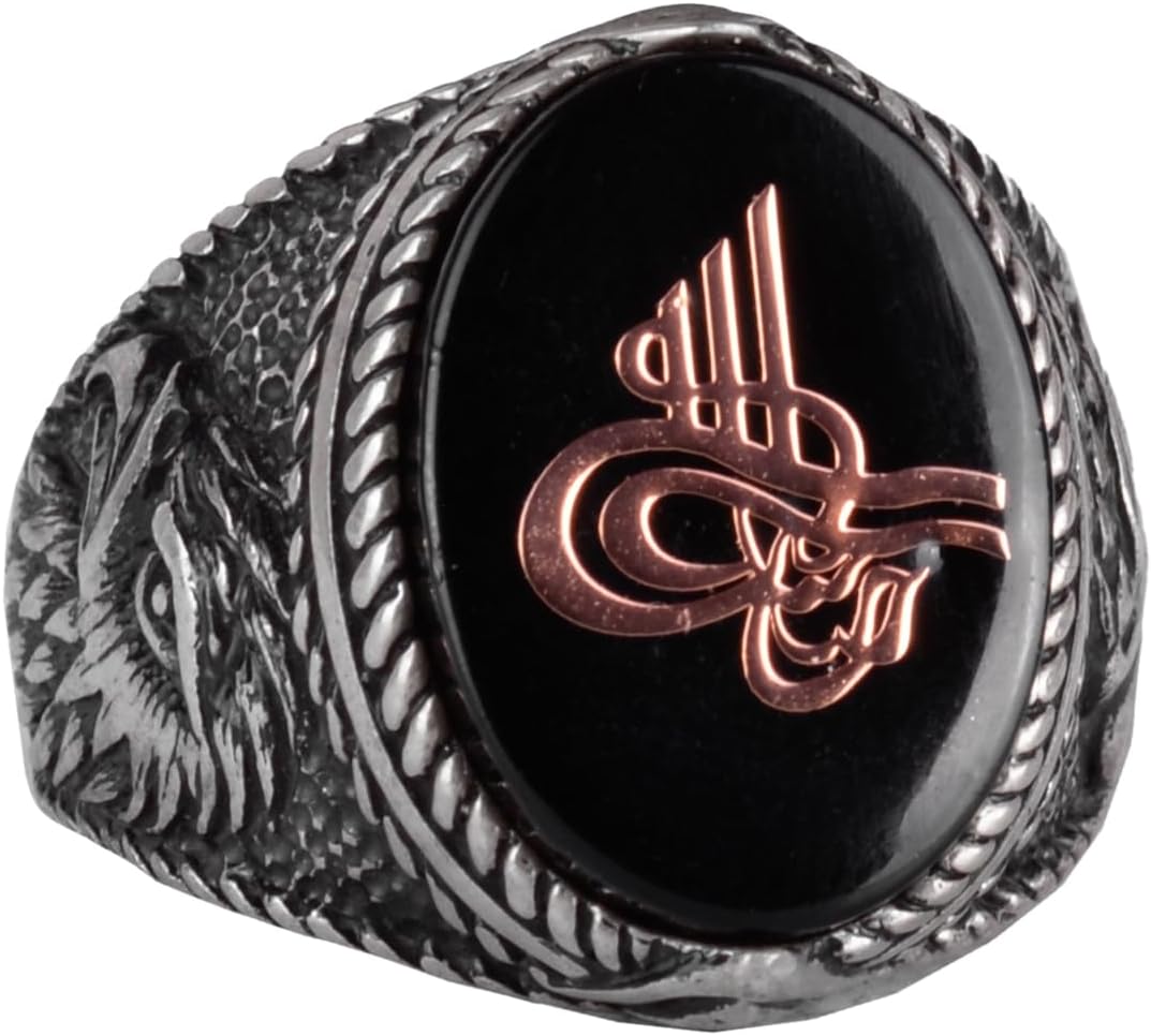 Kartal Yüzük - Yüzük - Erkek Yüzüğü - 925 Ayar Gümüş El Yapımı Erkek Yüzüğü (Osmanlı Tuğrası)