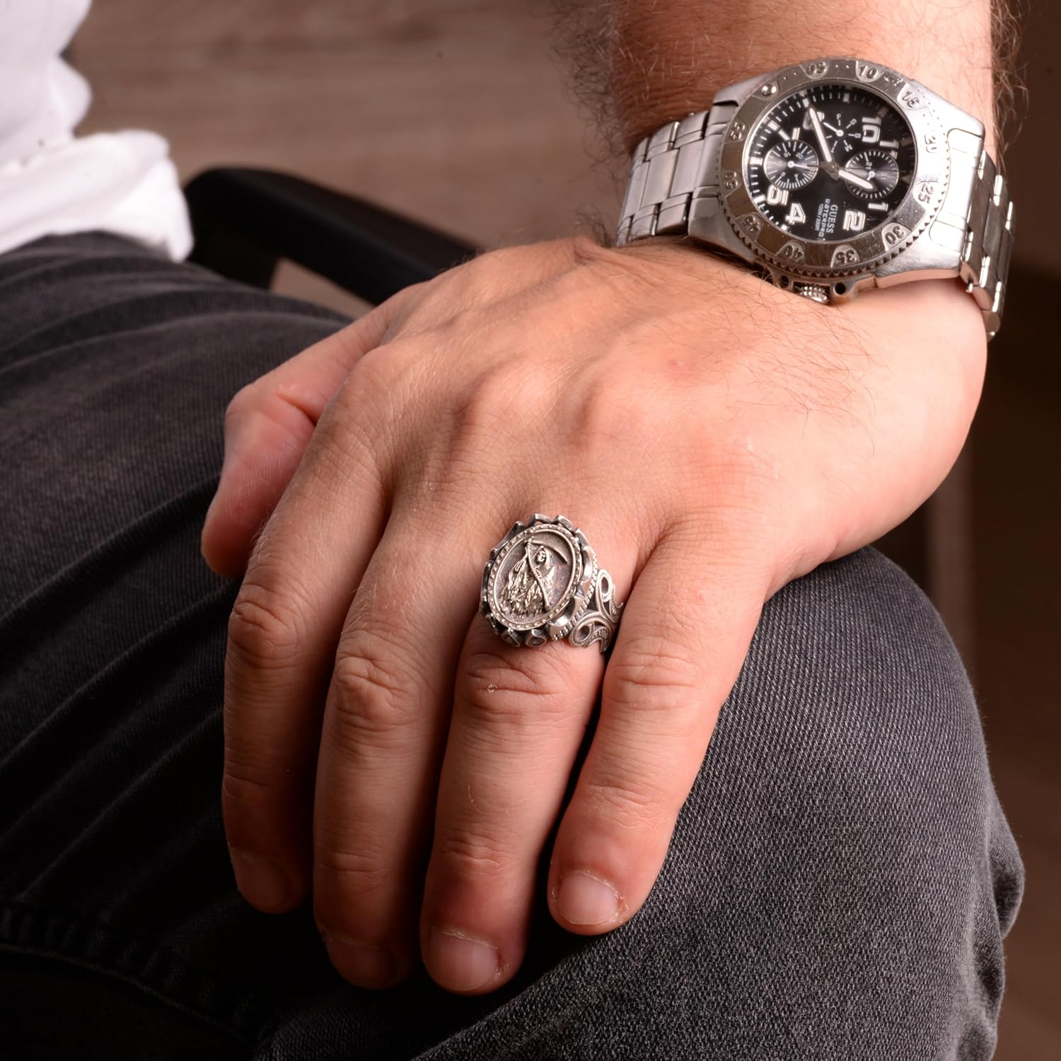 Karanlık Mezarcı Yüzüğü, 925 Ayar Gümüş Yüzük, El Yapımı Kral Yüzüğü Erkekler İçin