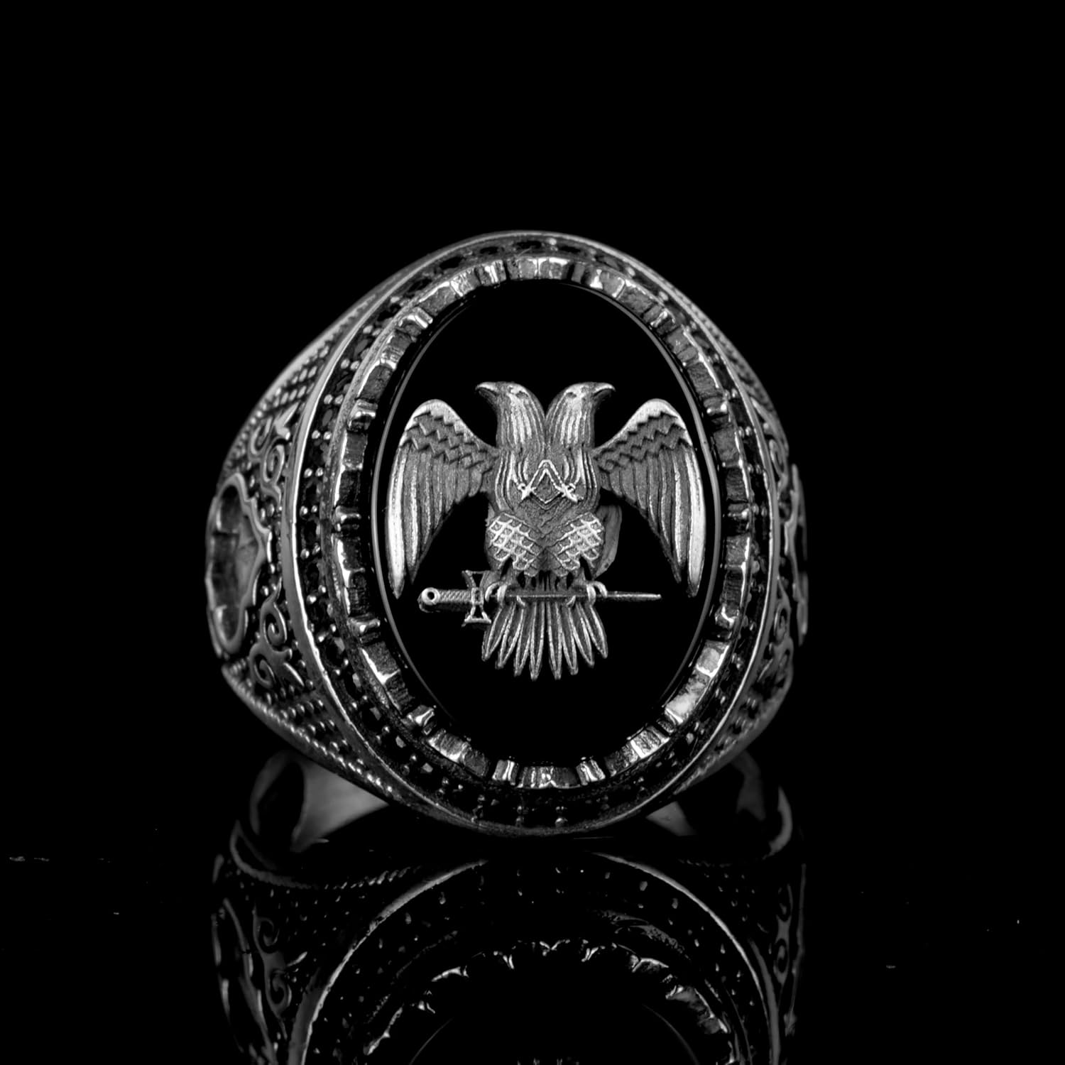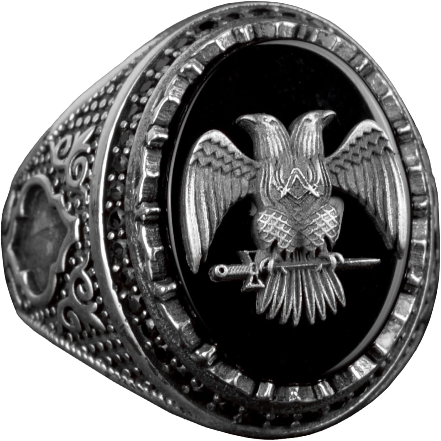 925 Ayar Gümüş Çift Başlı Kartal Simgesi ile Erkek Yüzük - Erkekler için Sembolik ve Güçlü Takı
