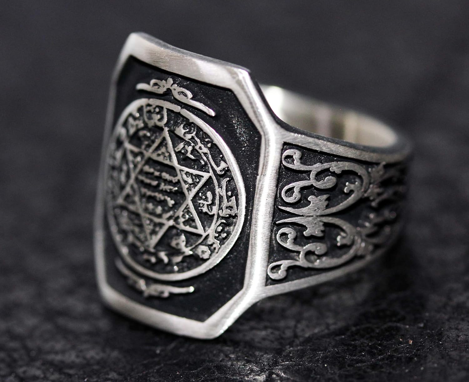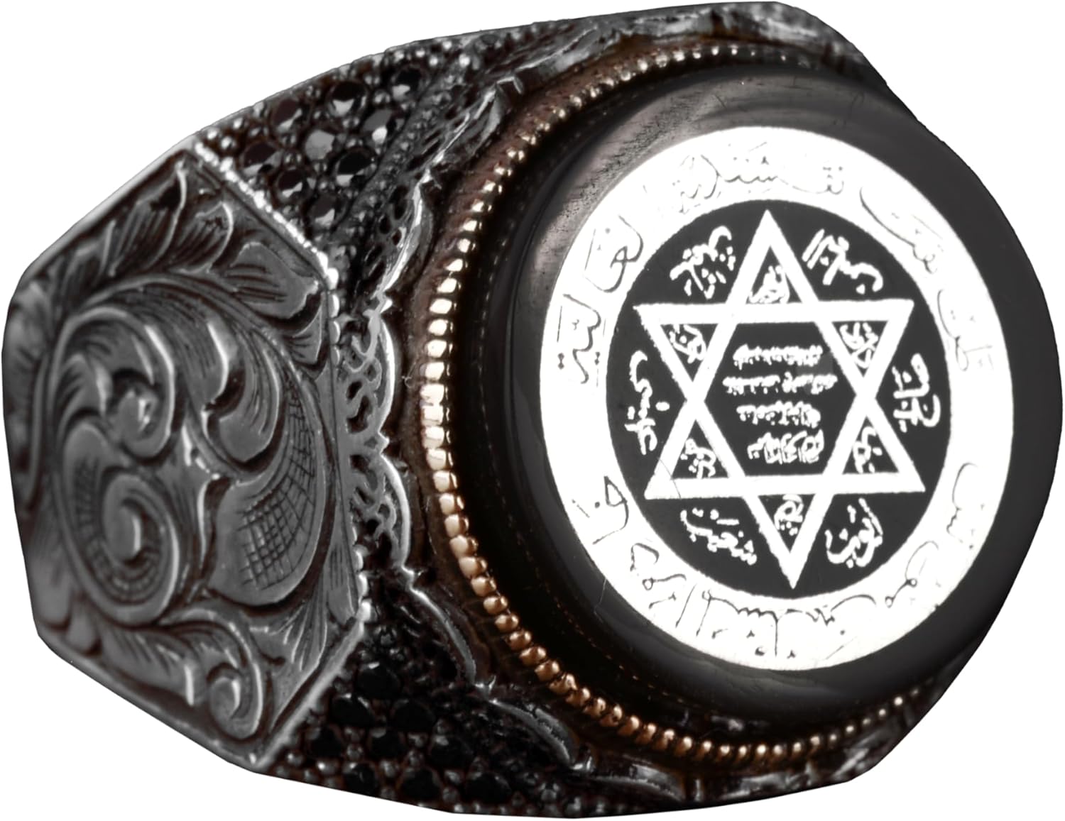 925 Ayar Gümüş Davut Yıldızı Yüzük - Süleyman Mührü Yüzüğü