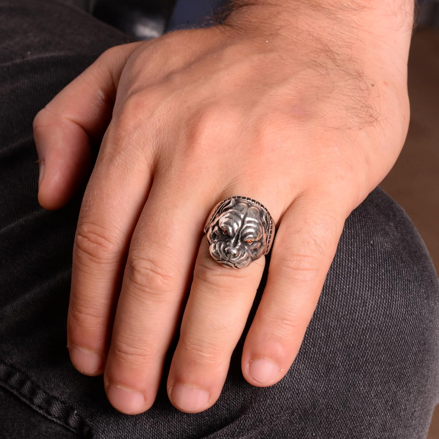 925 Ayar Gümüş Bulldog Yüzük, Gümüş Erkek Yüzük, Köpek Hayvan Yüzüğü