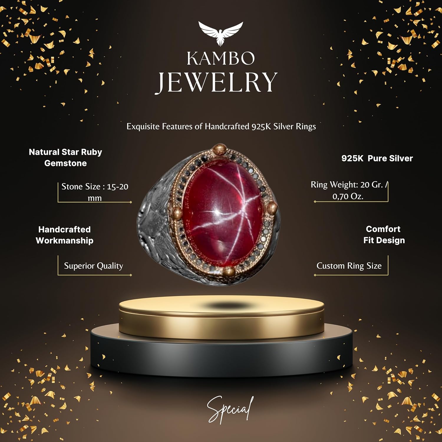 925 Ayar Gümüş Erkek Yüzük – Yıldız Yakut (Star Ruby) Taşlı Özgün El Yapımı Model