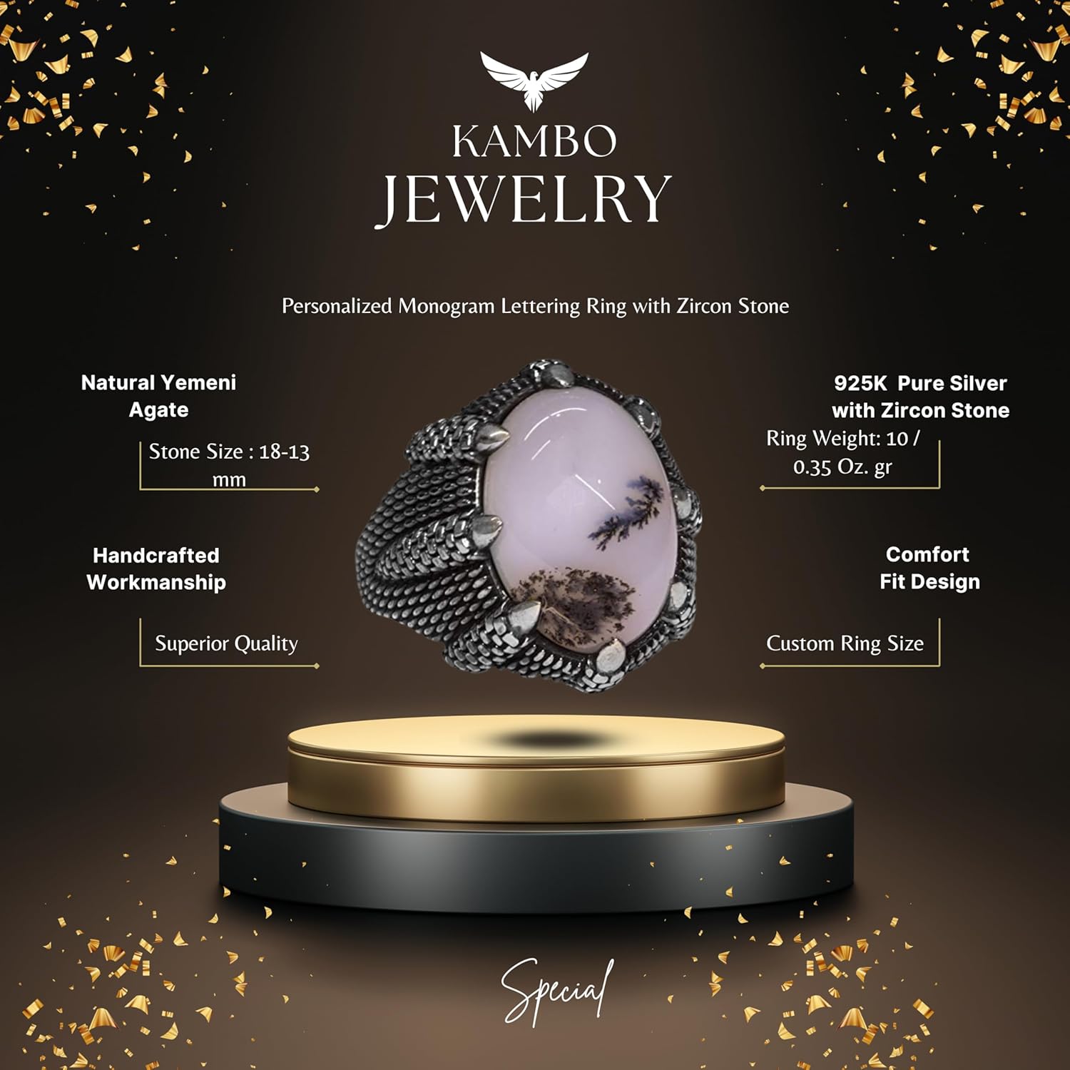 925 Ayar Gümüş Erkek Yüzük - Yemen Akik - Kartal Pençesi Tasarımı - El Yapımı Takı