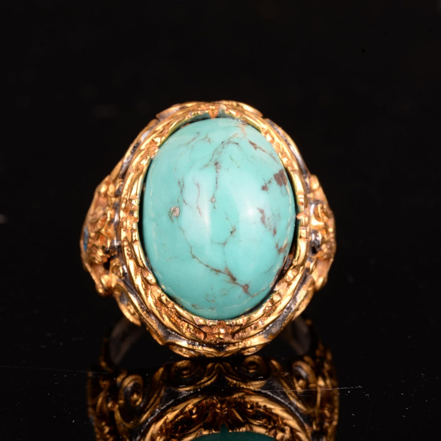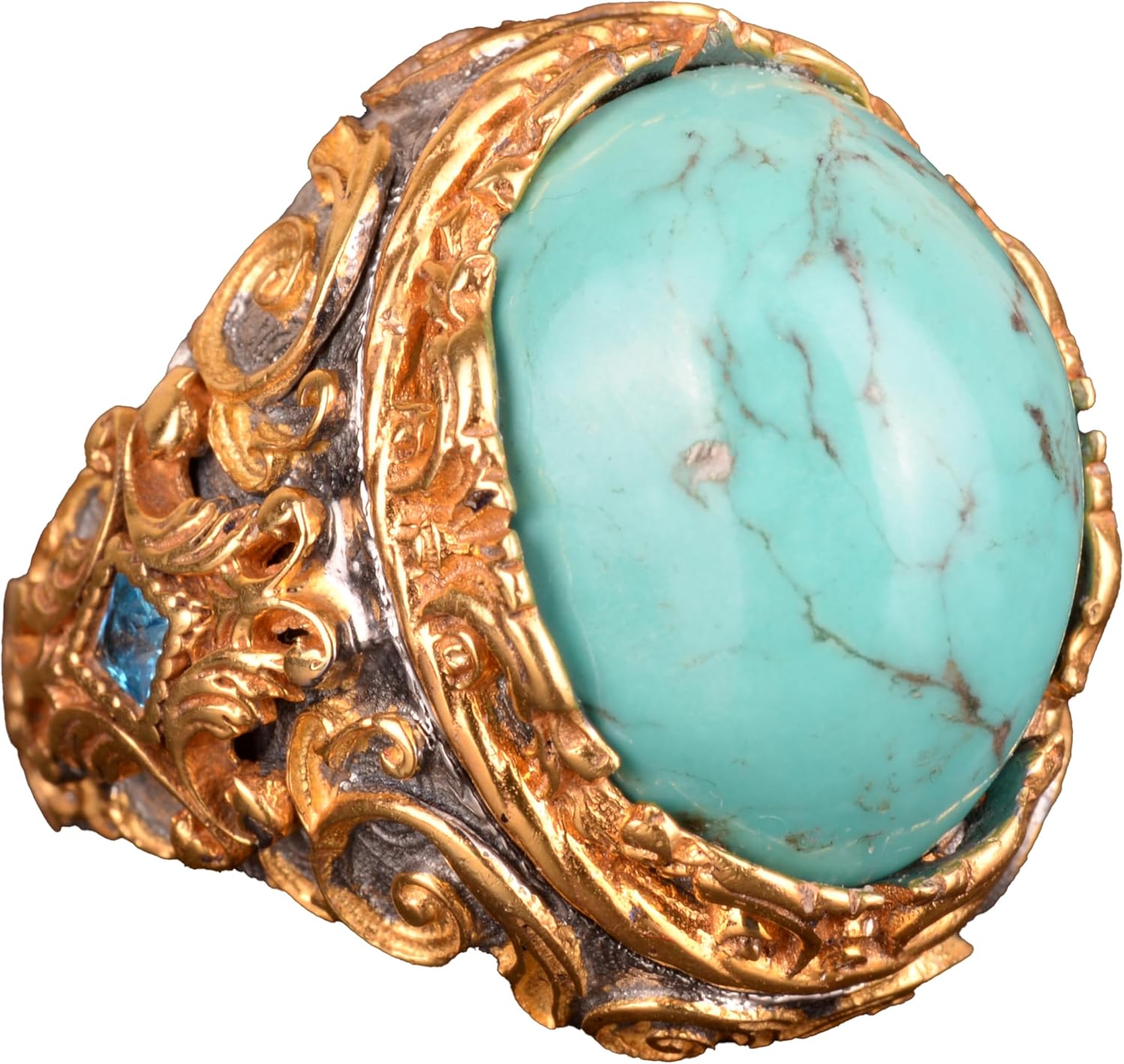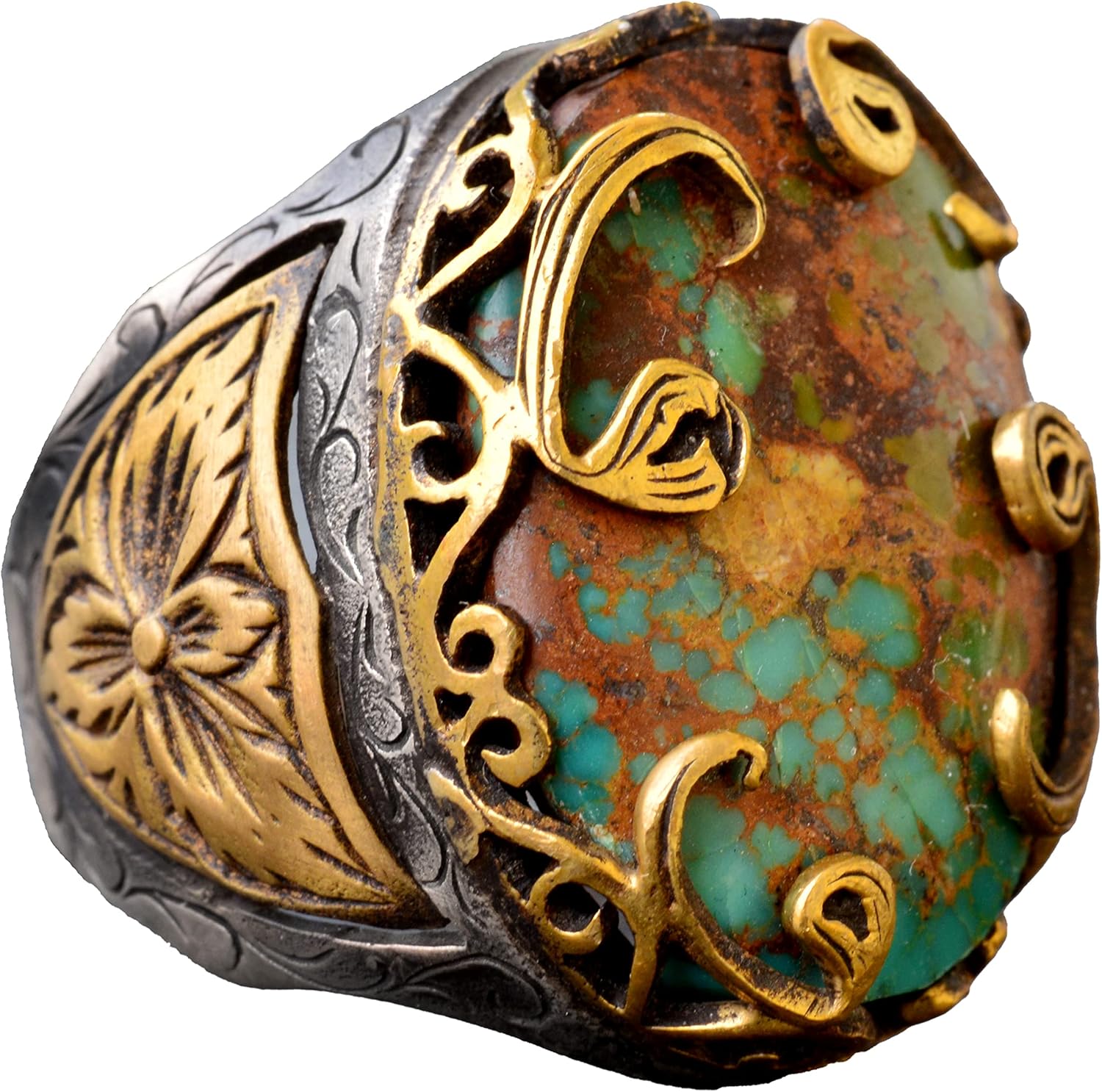 925 Ayar Gümüş Erkek Yüzük - Orta Doğu Tasarımı Doğal Turkuaz