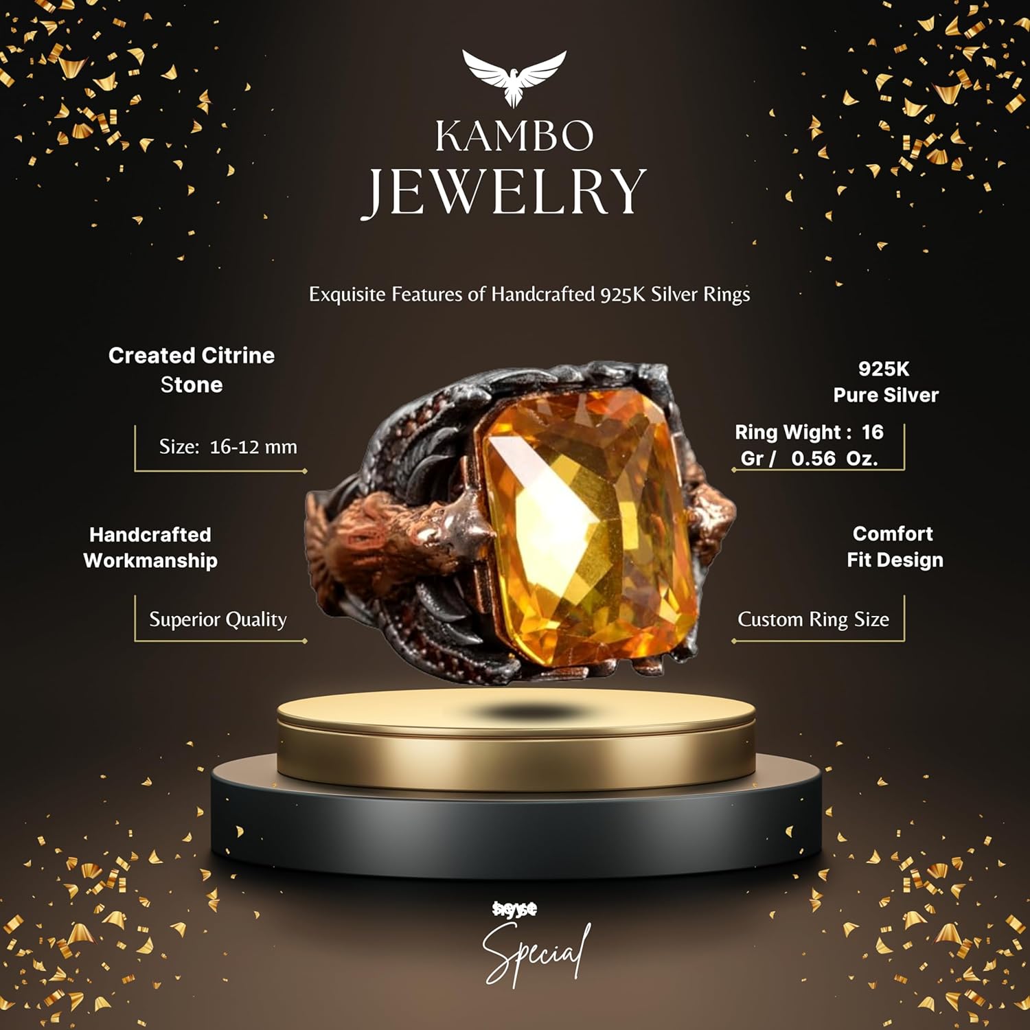 925 Ayar Gümüş Erkek Yüzük - Oluşturulmuş Sitrin veya Oluşturulmuş Sultanit - Şık Tasarım ve Zamansız Çekicilik
