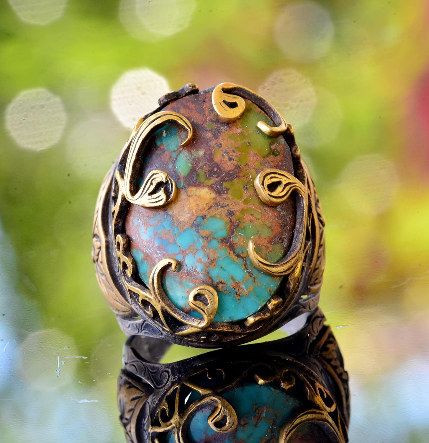 925 Ayar Gümüş Erkek Yüzük Doğal Arizona Turkuaz Taşı - Cesur ve Şık Tasarım, Günlük Kullanım ve Özel Etkinlikler İçin İdeal (Stil-1)