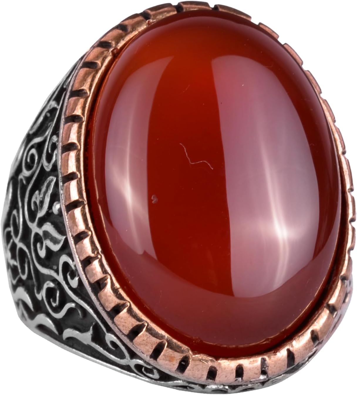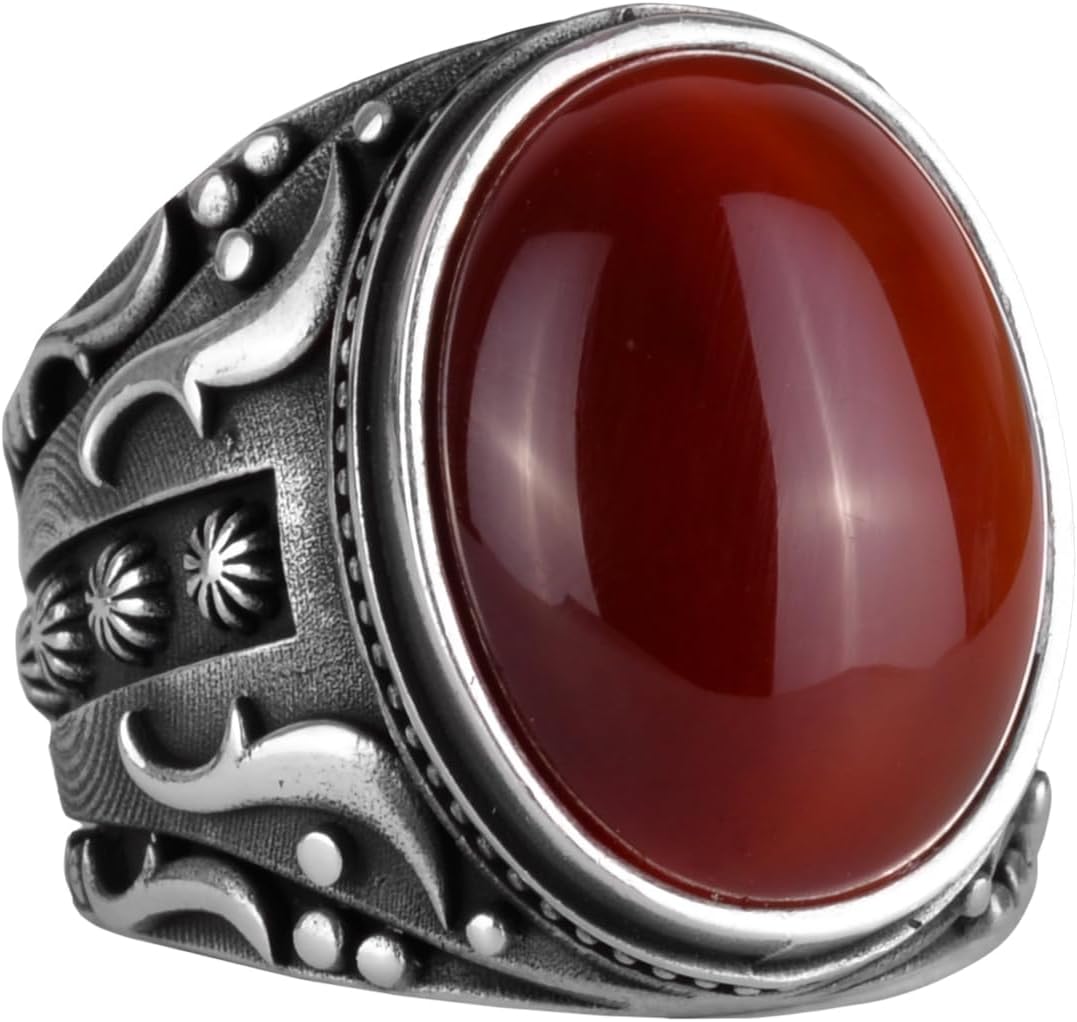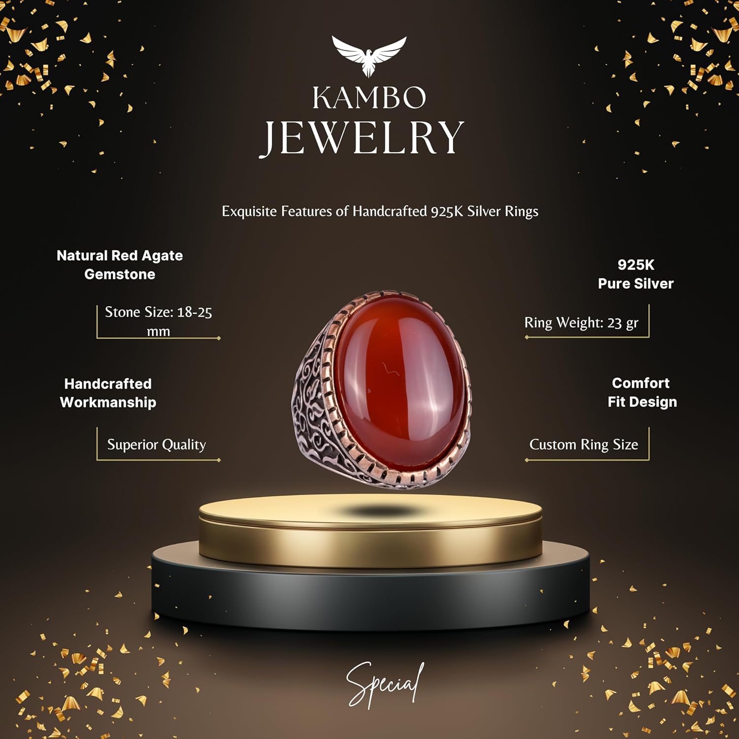 El Yapımı Gerçek Doğal Kırmızı Akik Taş Yüzük, 925 Ayar Gümüş Yüzük Erkekler İçin, Tasarım Gümüş Erkek Yüzüğü