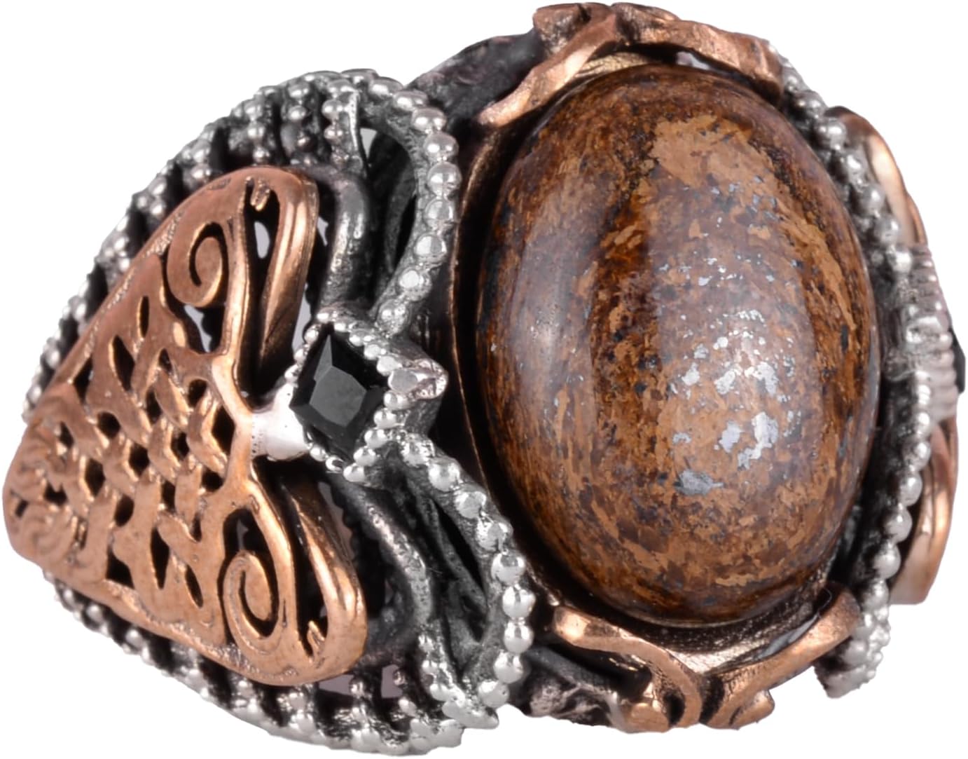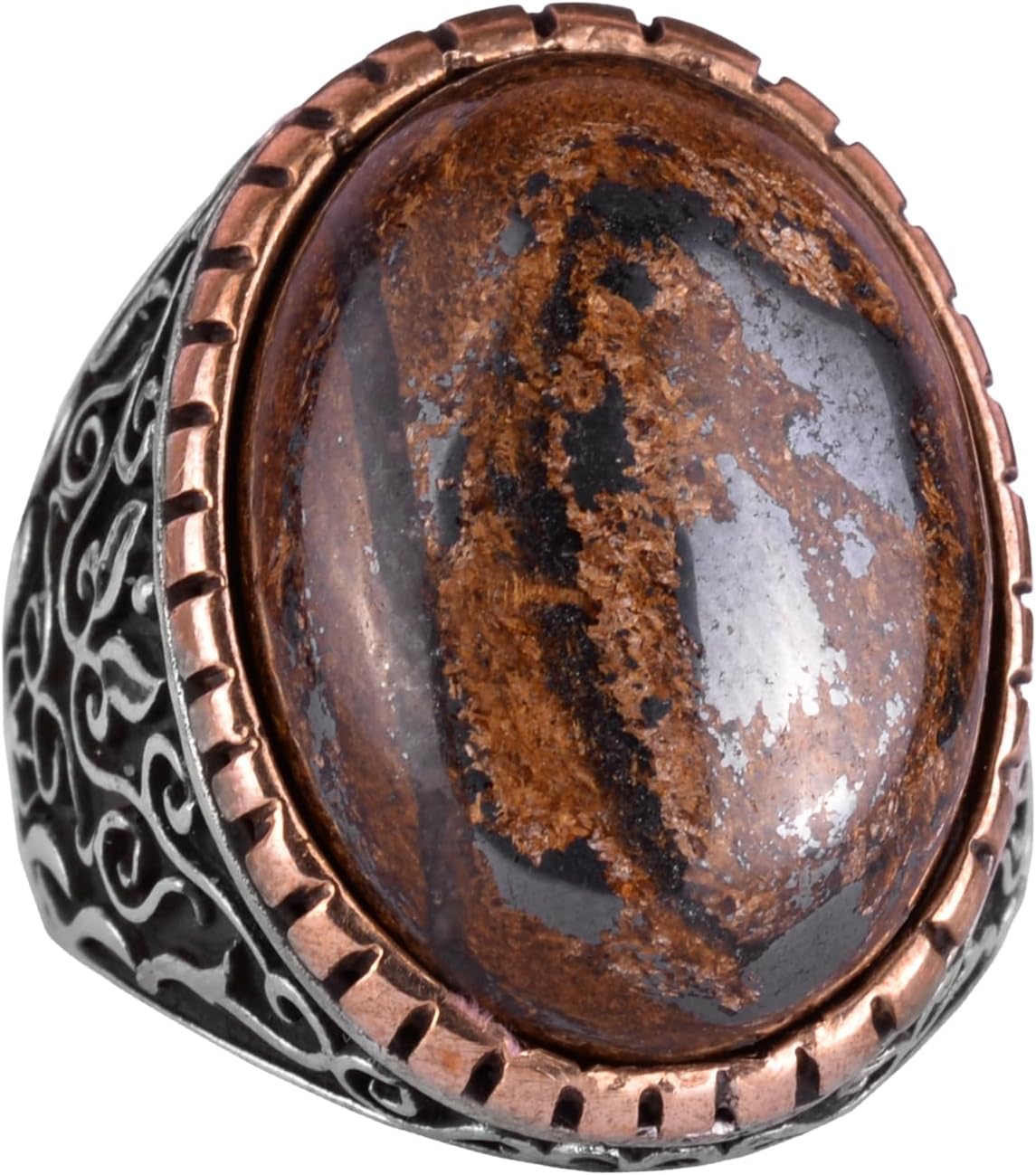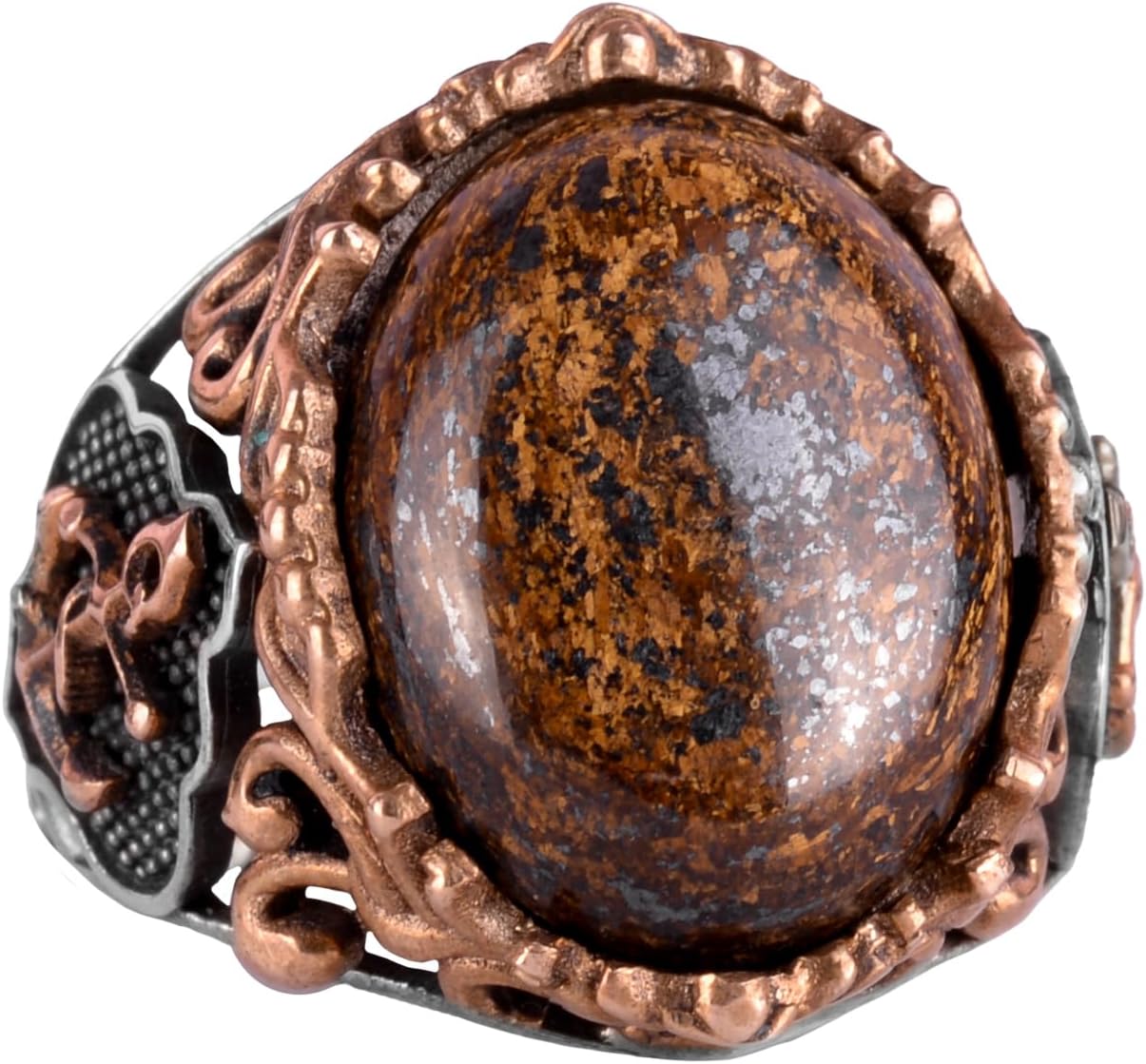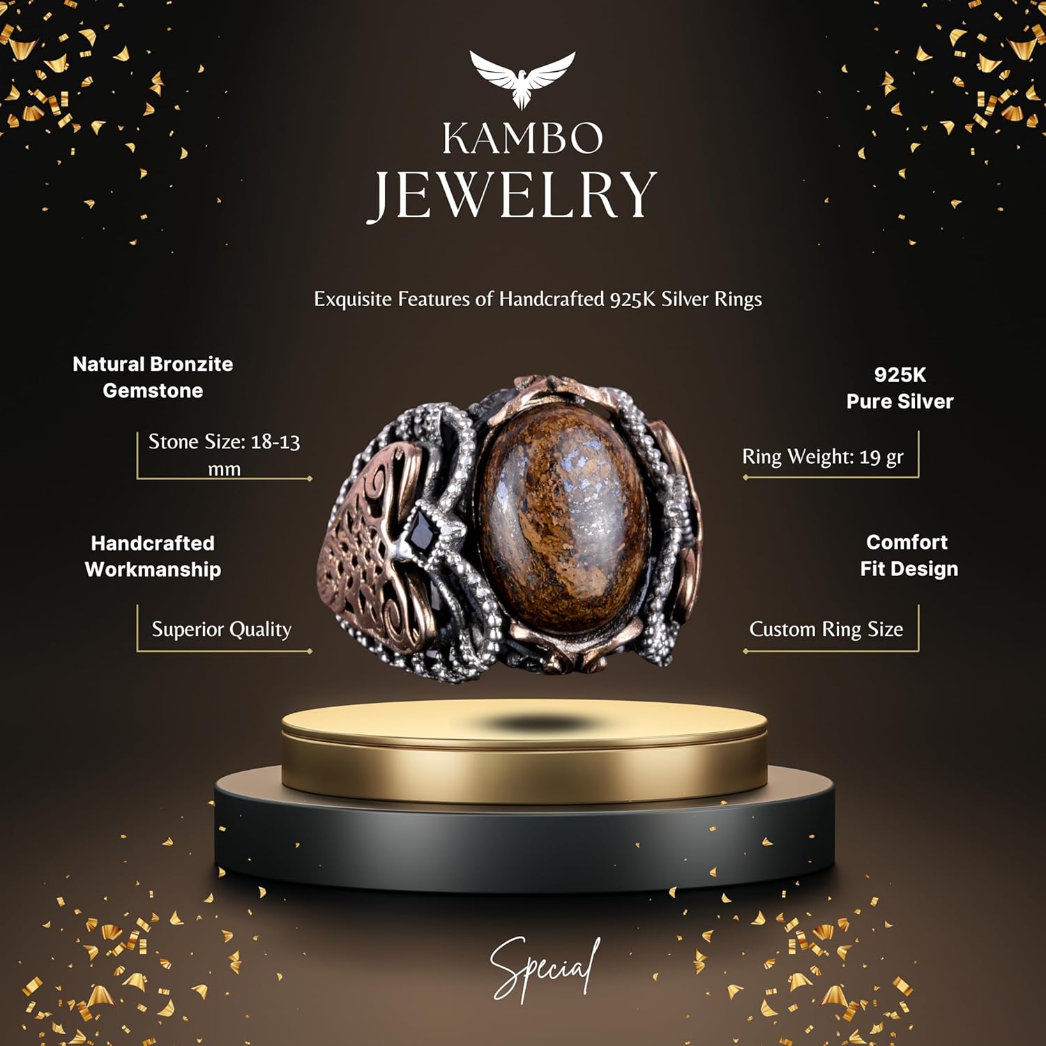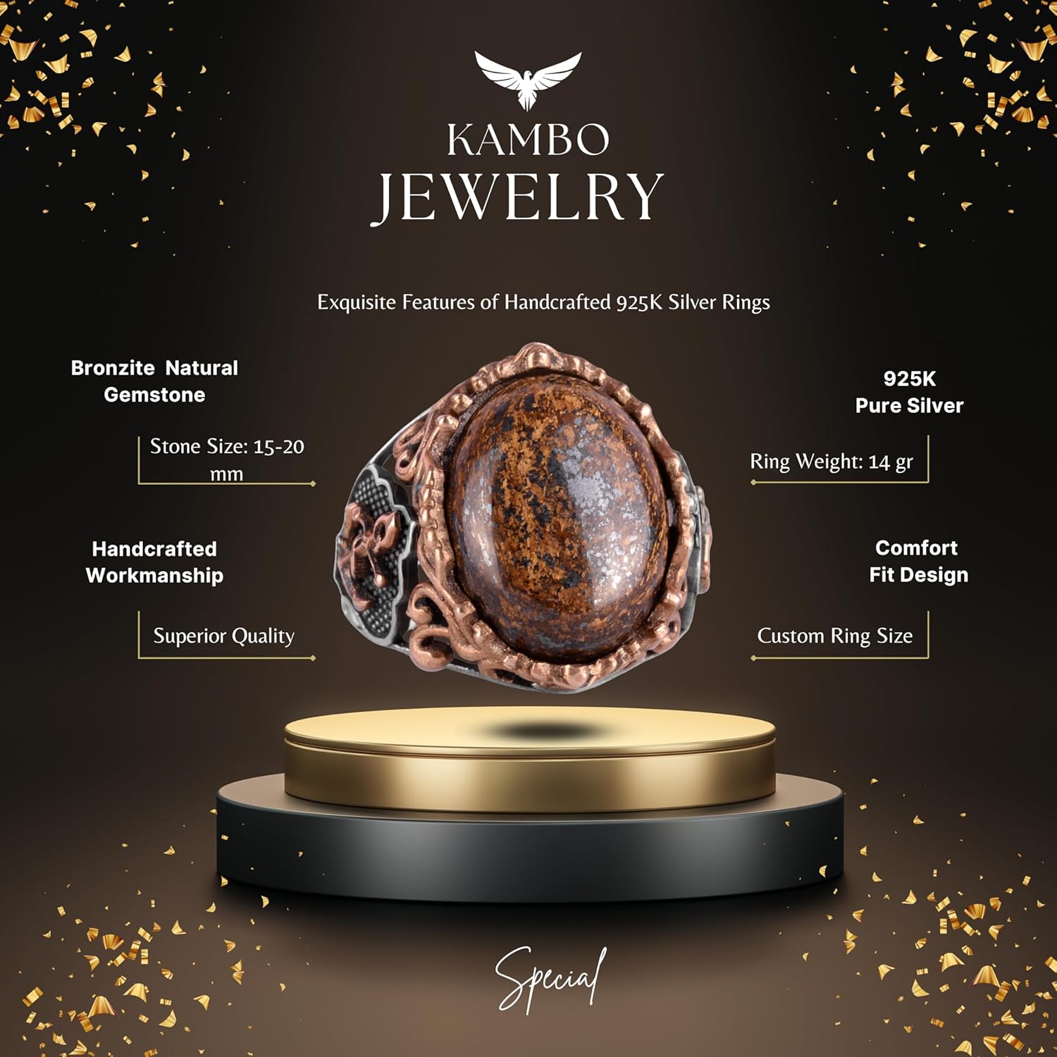 El Yapımı Gerçek Doğal Bronzit Taş Yüzük, 925 Ayar Katı Gümüş Erkek Yüzüğü