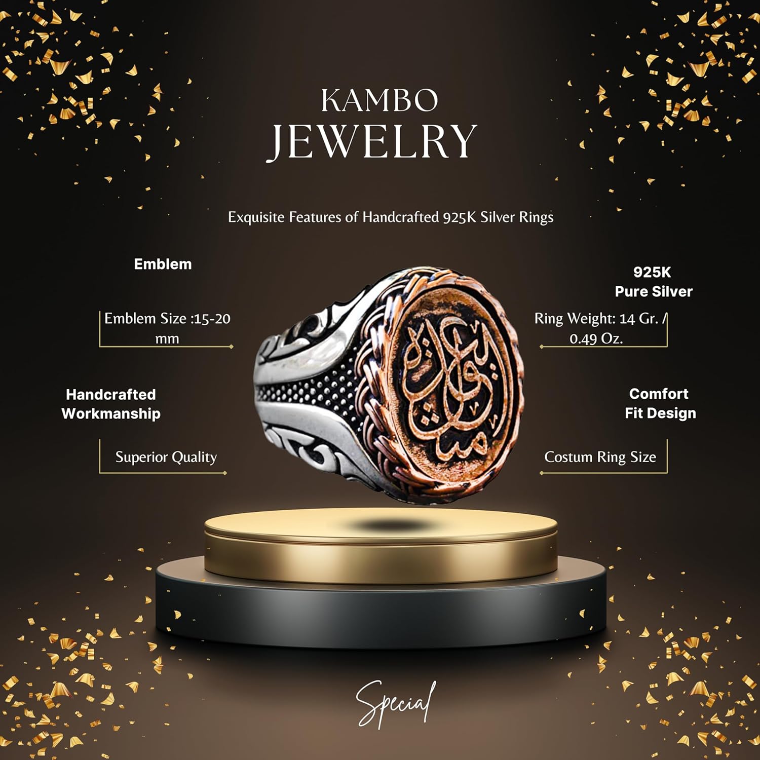 El Yapımı Gümüş Erkek Yüzük | Bronza Inlay ile Zarif Yazı | Cesur ve Şık İslami Yüzük