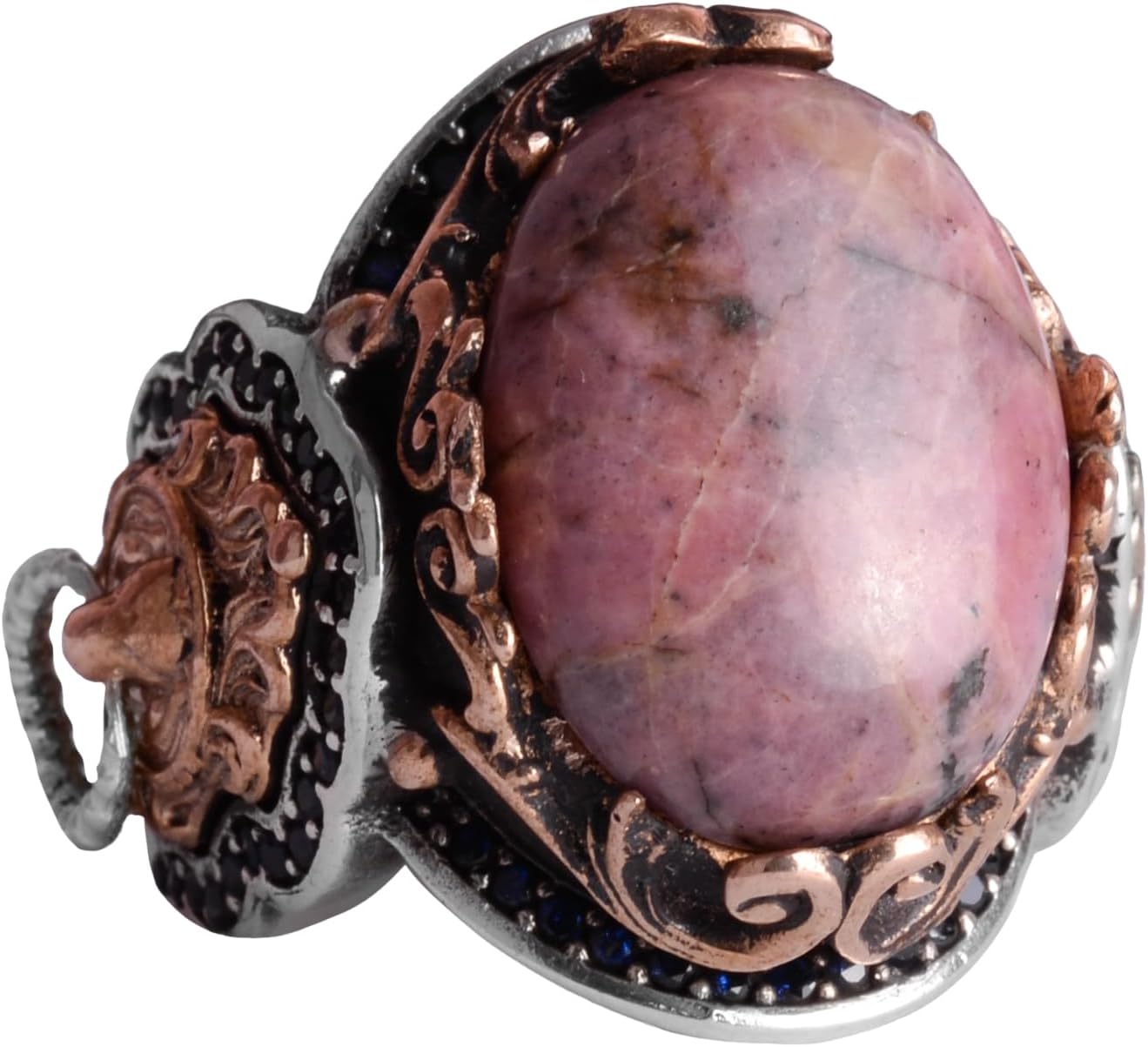 El Yapımı Gerçek Doğal Rodonit Pembe Taşı Yüzük, 925 Ayar Gümüş Yüzük, Erkek Yüzüğü