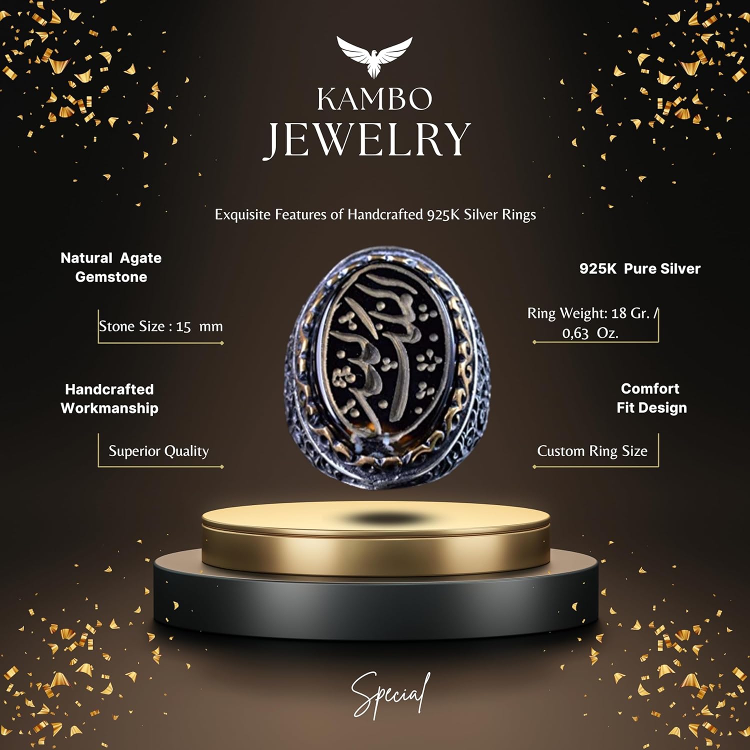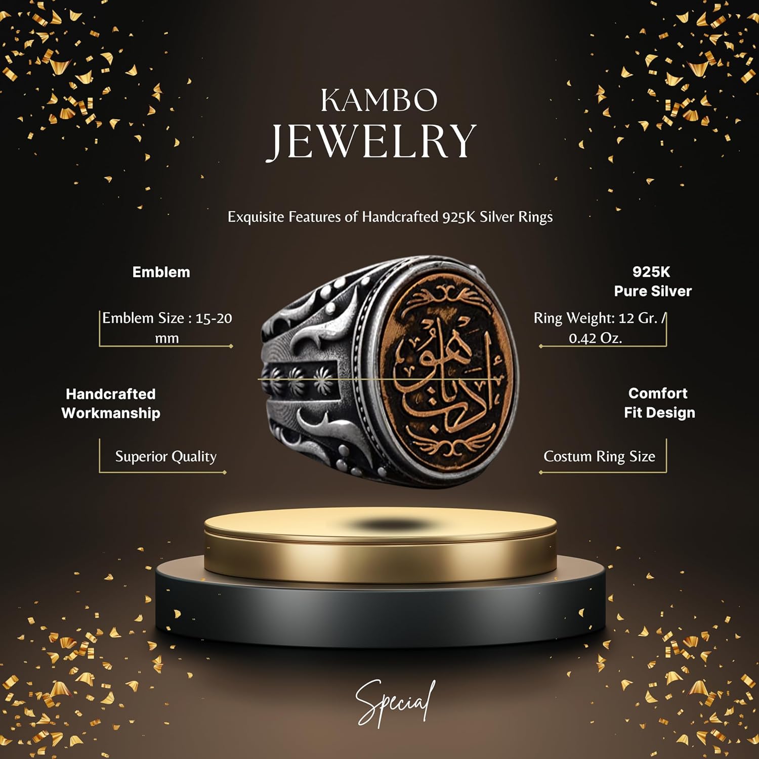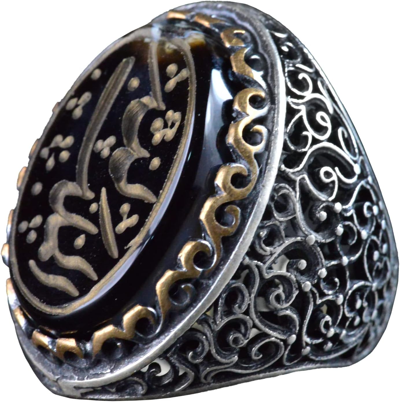 El Yapımı İslami Hat Sanatı Yüzük | 925 Ayar Gümüş Erkek Yüzük | Ruhsal ve Şık Tasarım