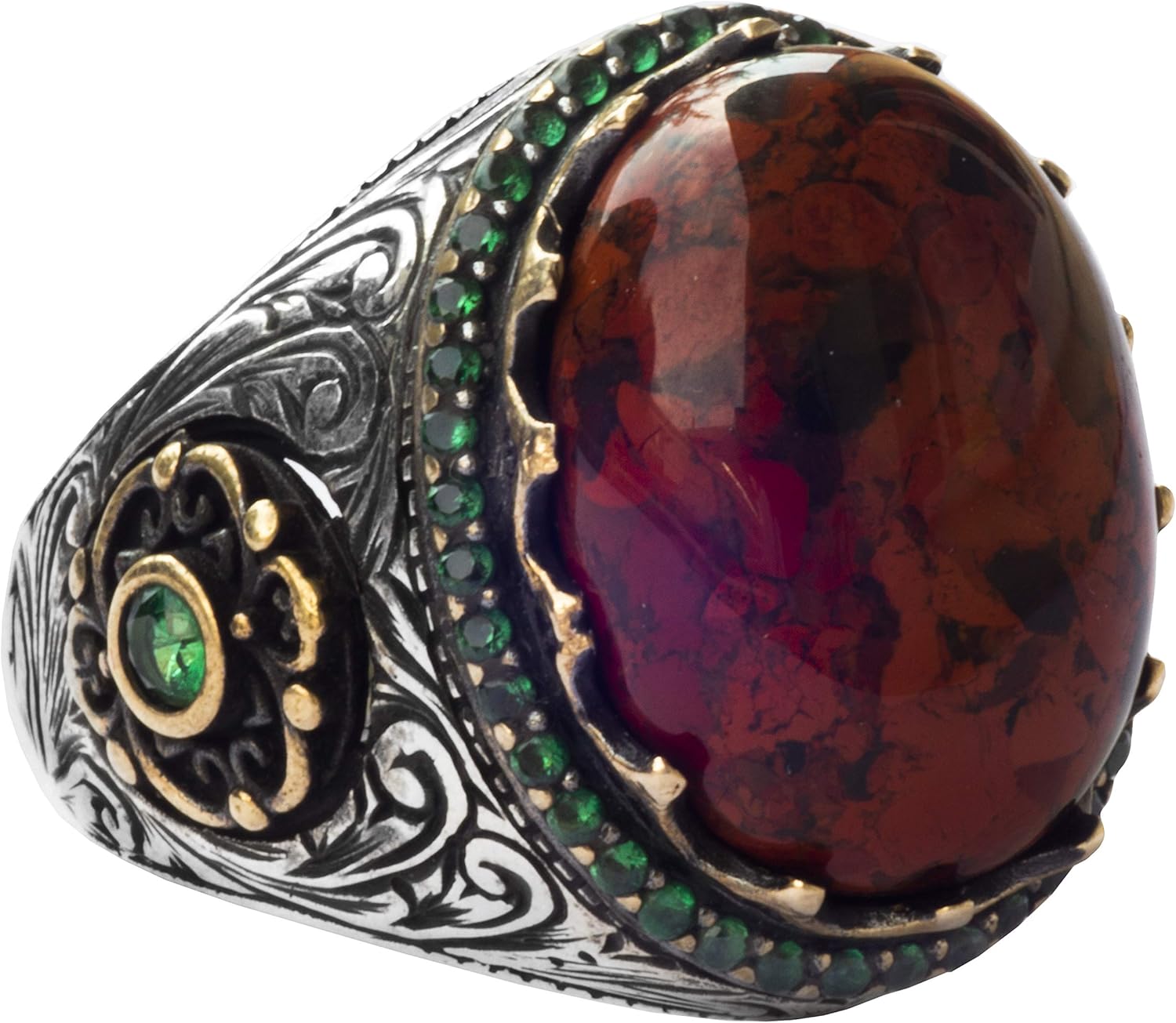 El Yapımı Gümüş Erkek Yüzük, Gerçek Doğal Taş Yüzük (Kan Taşı)