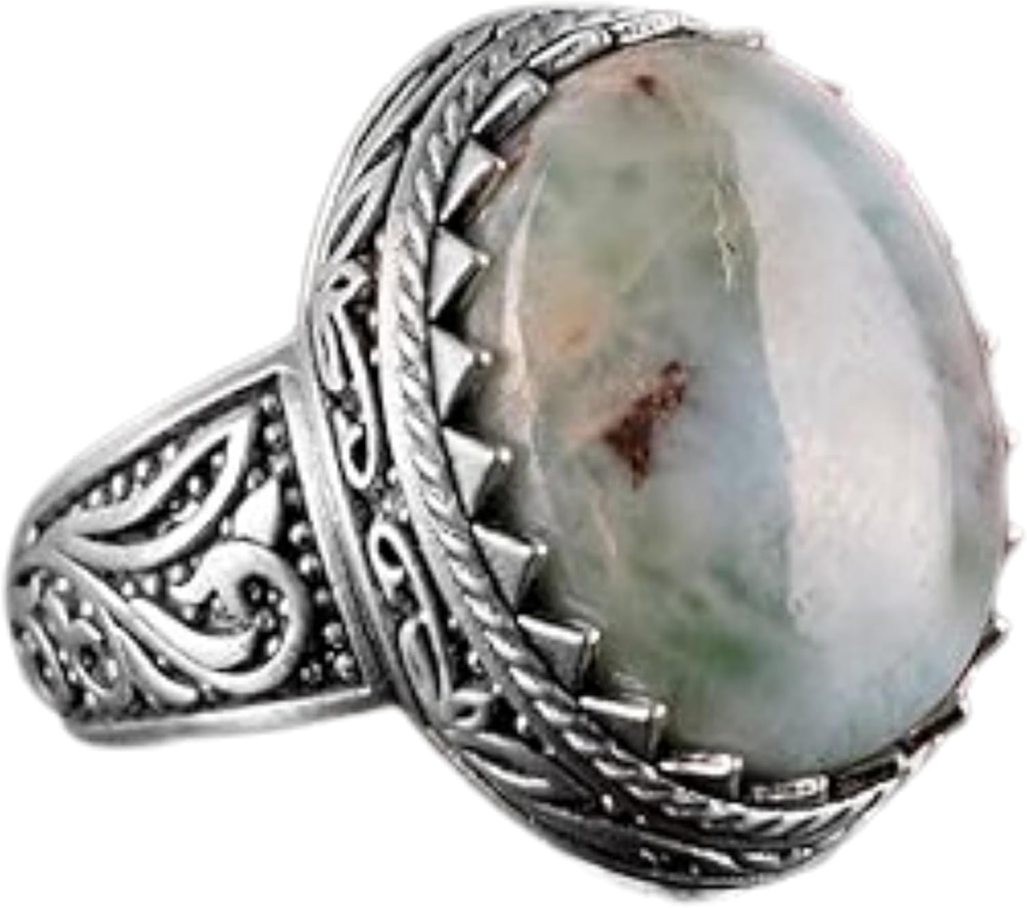 El yapımı Larimar Taşlı Yüzük - Sakin 925K Katı Gümüş Erkek Yüzüğü - Okyanus Sakinliği Tasarımı
