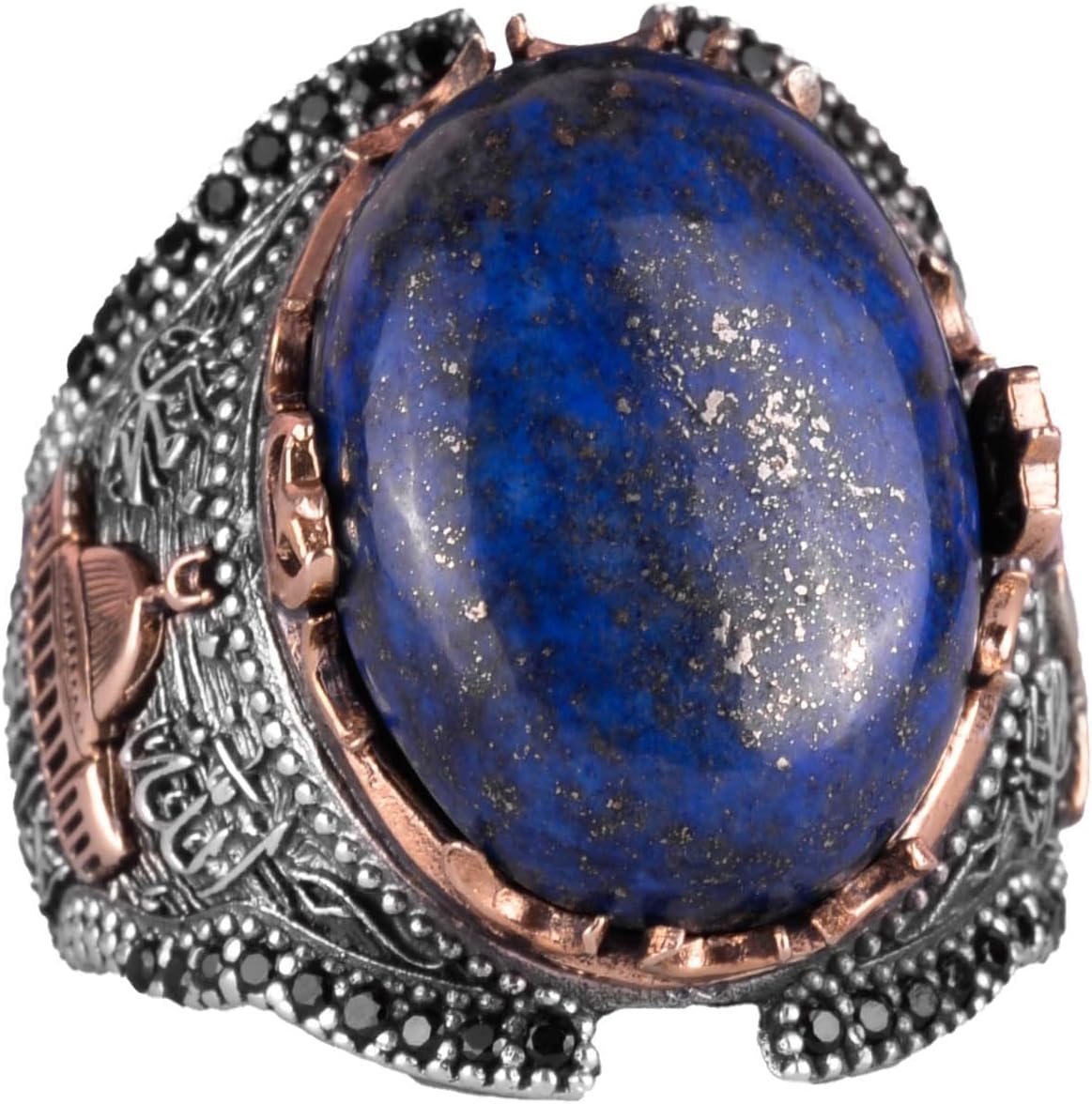 El Yapımı Lapis Lazuli Taş Yüzük, Gümüş Camii Yüzük, 925 Ayar Sert Gümüş Erkek Yüzük - Bilgelik ve Gerçek Tasarımı