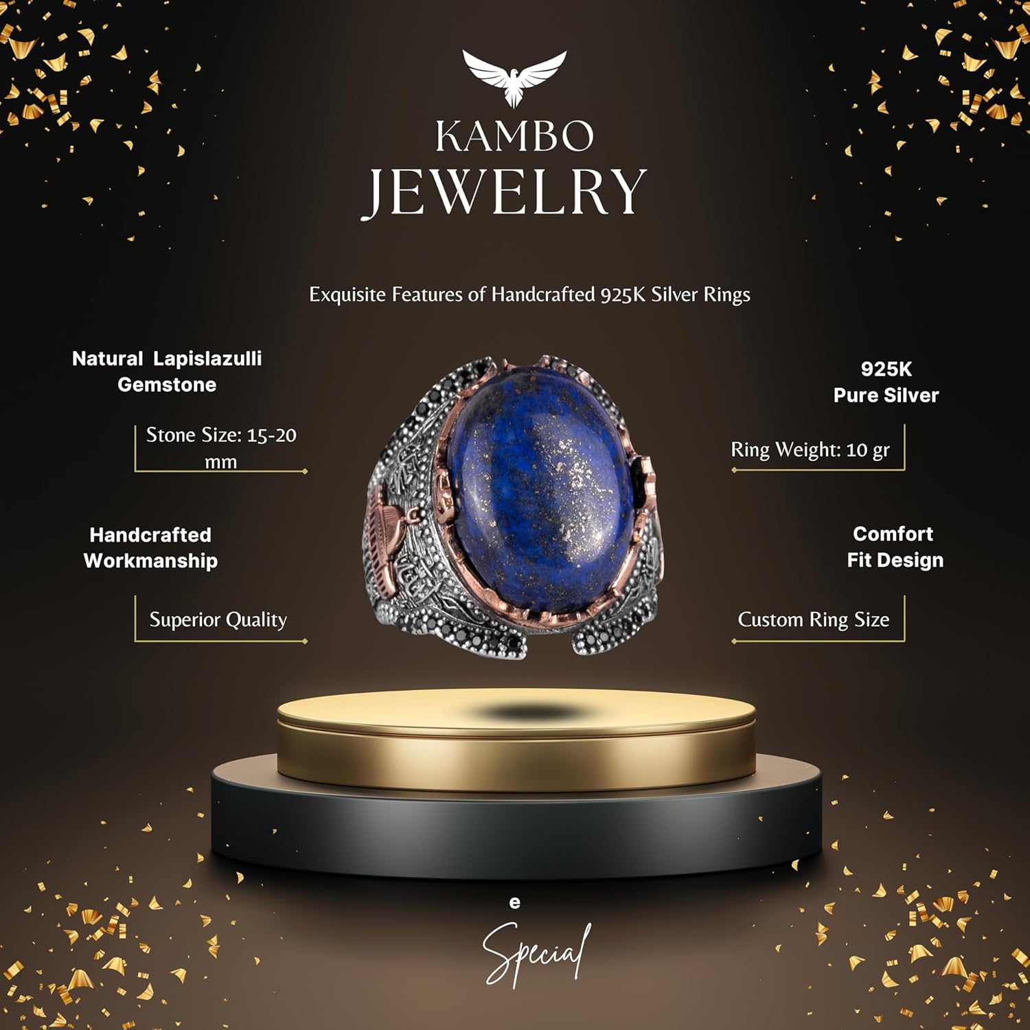 El Yapımı Lapis Lazuli Taş Yüzük, Yüzücü Halka Yüzük, 925K Sert Gümüş Erkek Yüzük - Bilgelik ve Gerçek Tasarımı