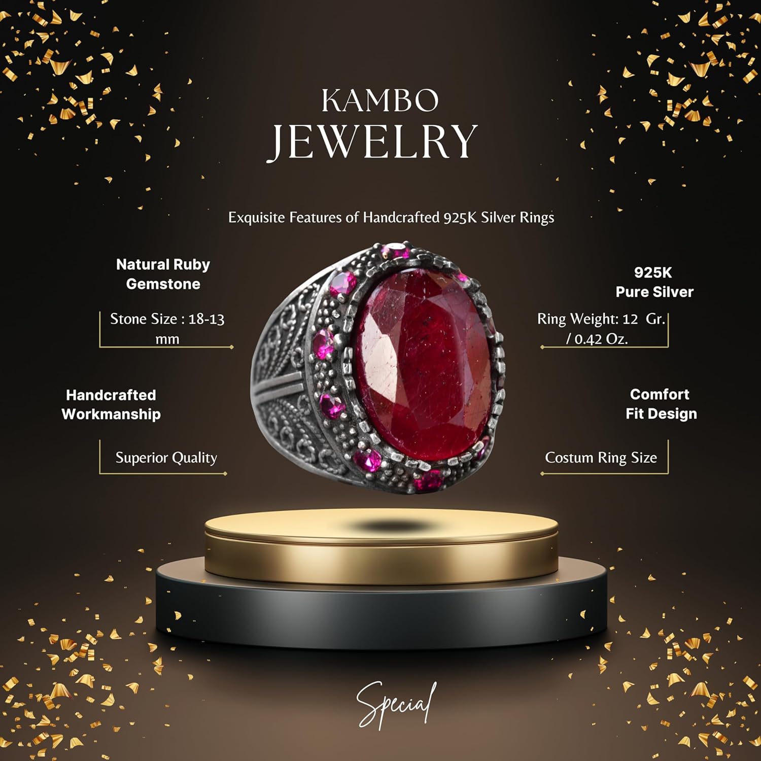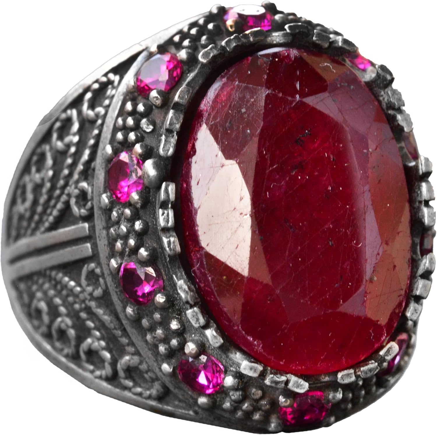 El Yapımı Sterling Gümüş Erkek Yüzük | Doğal Yakut Taşı | Sultan Yüzük - Cesur ve Şatafatlı Tasarım