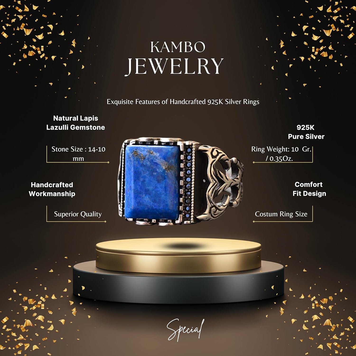 El Yapımı Sterlin Gümüş Erkek Yüzük | Doğal Lapis Lazuli Taşı | Bilgelik ve Gerçek Tasarımı