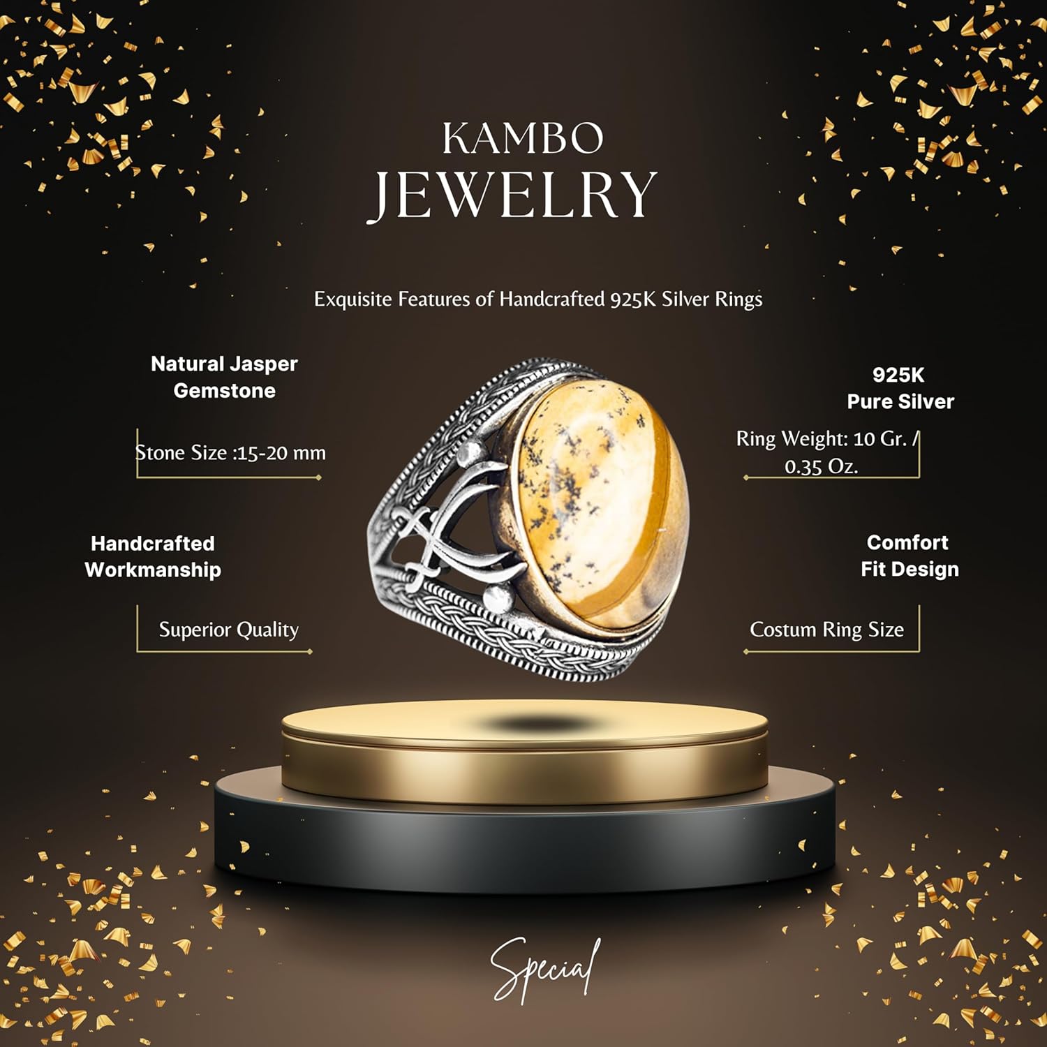 El Yapımı Sterlin Gümüş Erkek Yüzük | Doğal Resim Jasper Taşı | Topraklama ve Stabilite Tasarımı