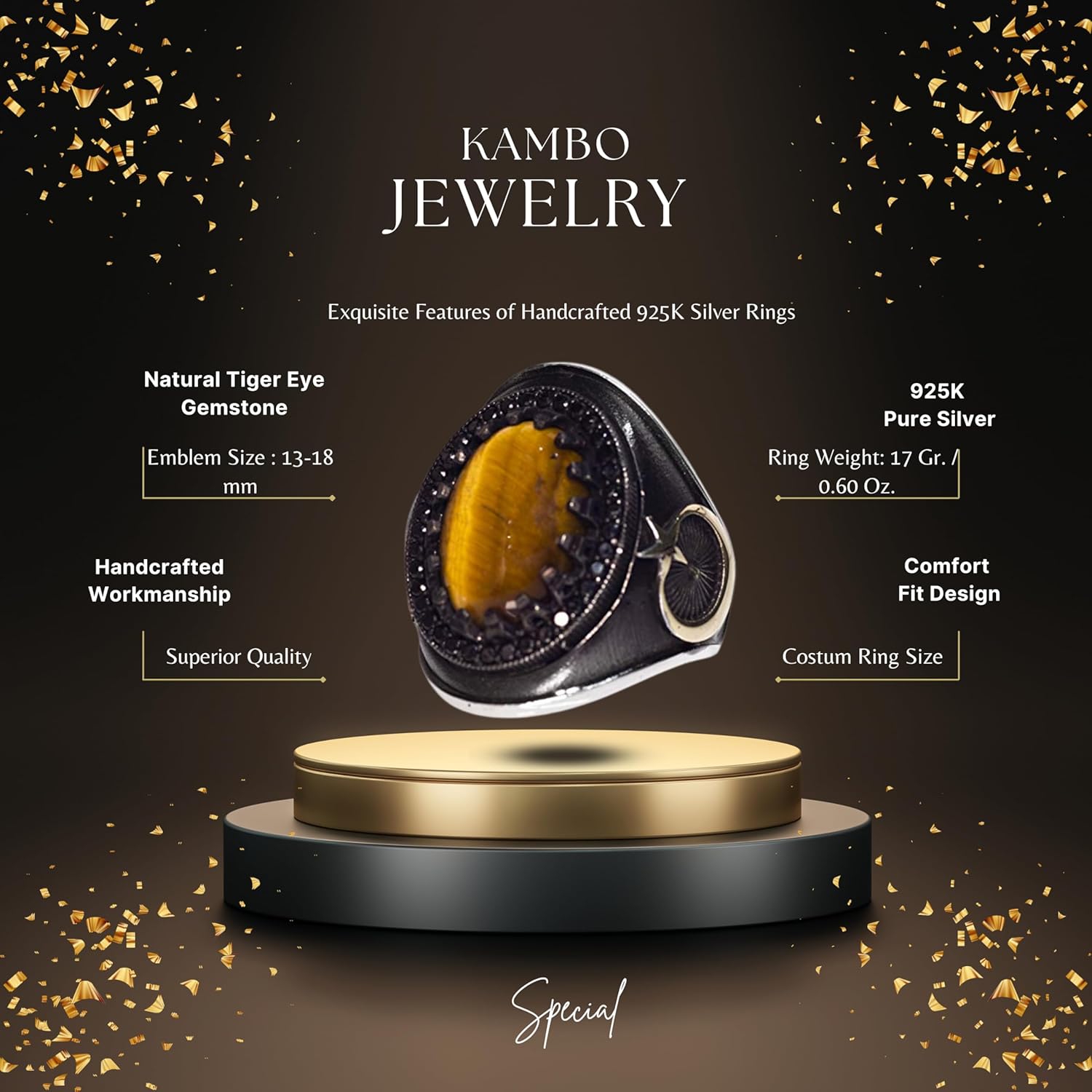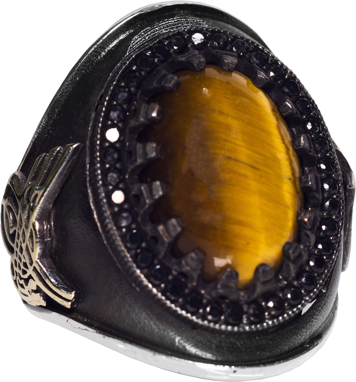 El Yapımı Sterlin Gümüş Erkek Yüzük | Doğal Kaplan Göz Taşı | Güç ve Koruma Tasarımı