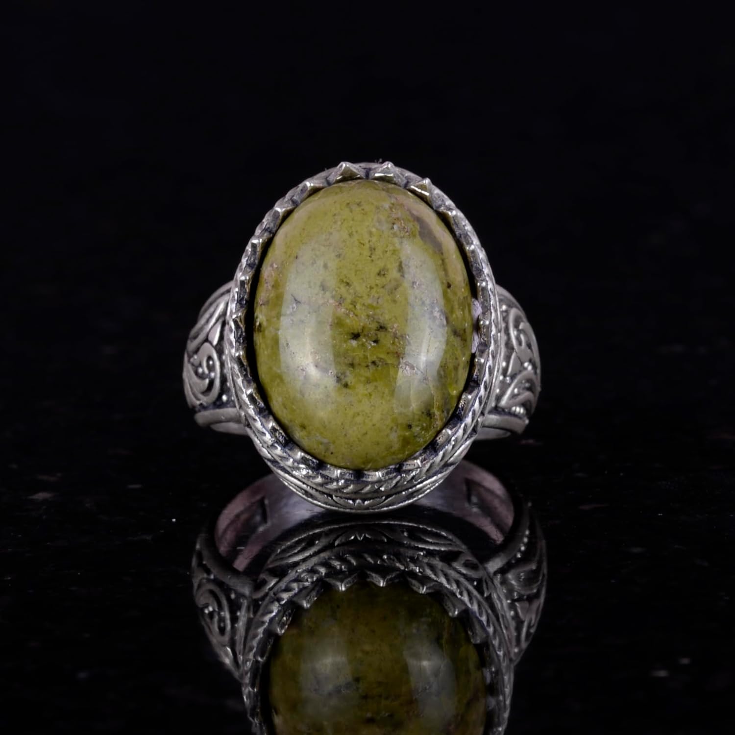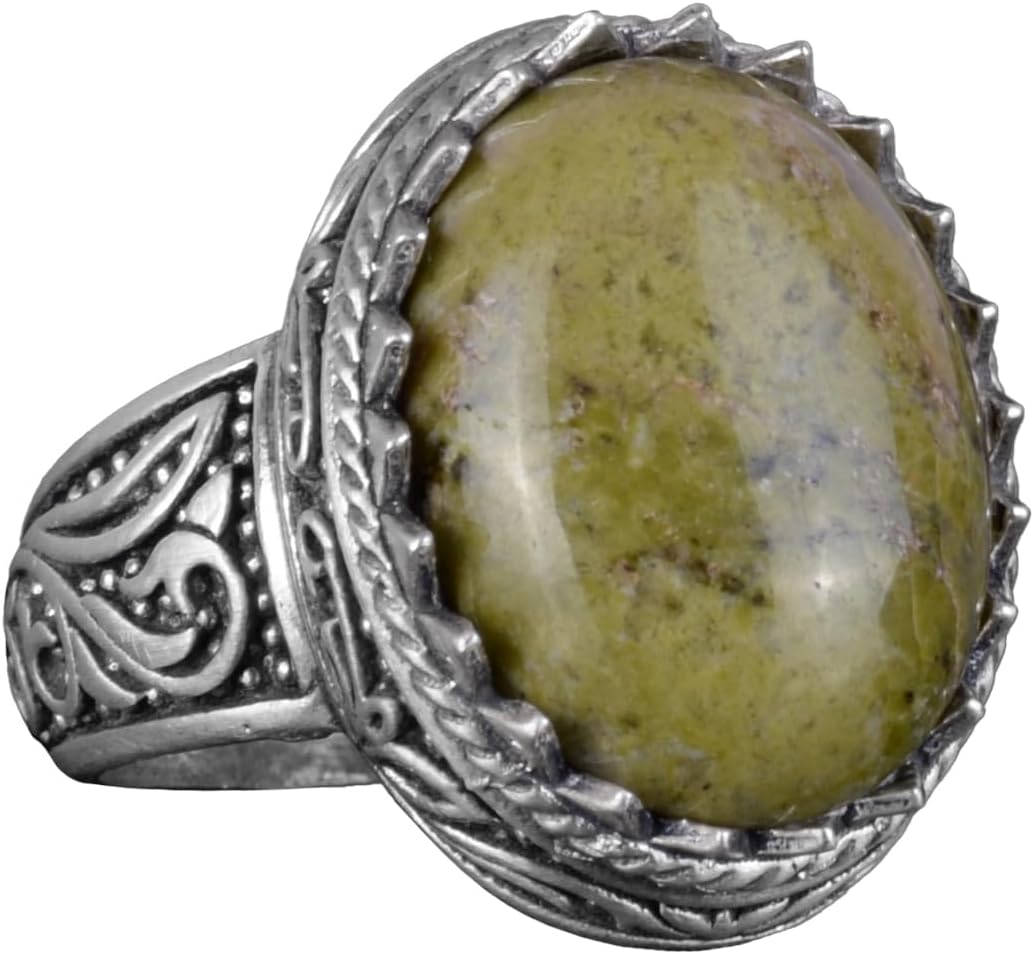 El Yapımı Unakite Taş Yüzük - 925 Ayar Sert Gümüş Erkek Yüzük - Sanatsal Tasarım
