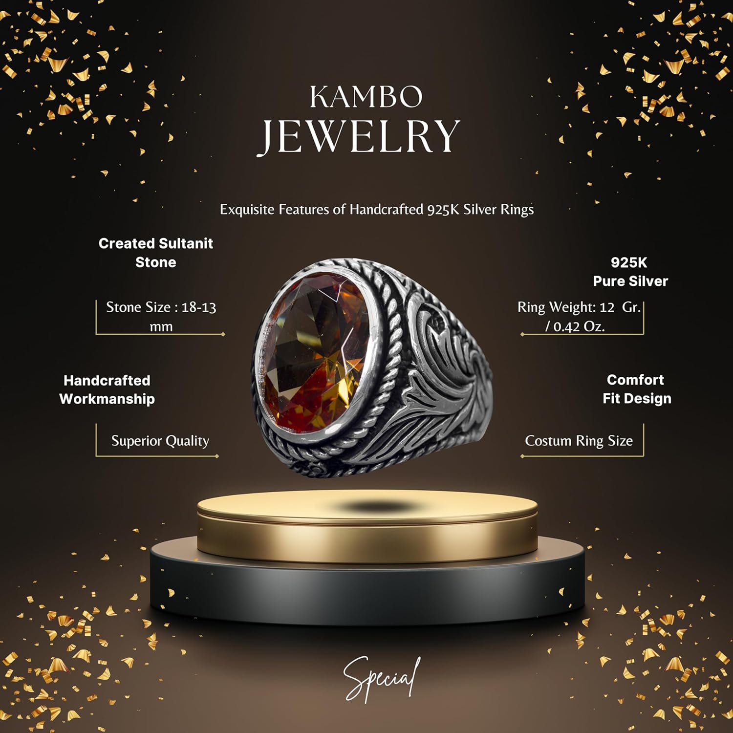 El Yapımı Sultanite Taş Yüzük, 925 Ayar Gümüş Erkek Yüzüğü - Dönüştürücü Zarafet