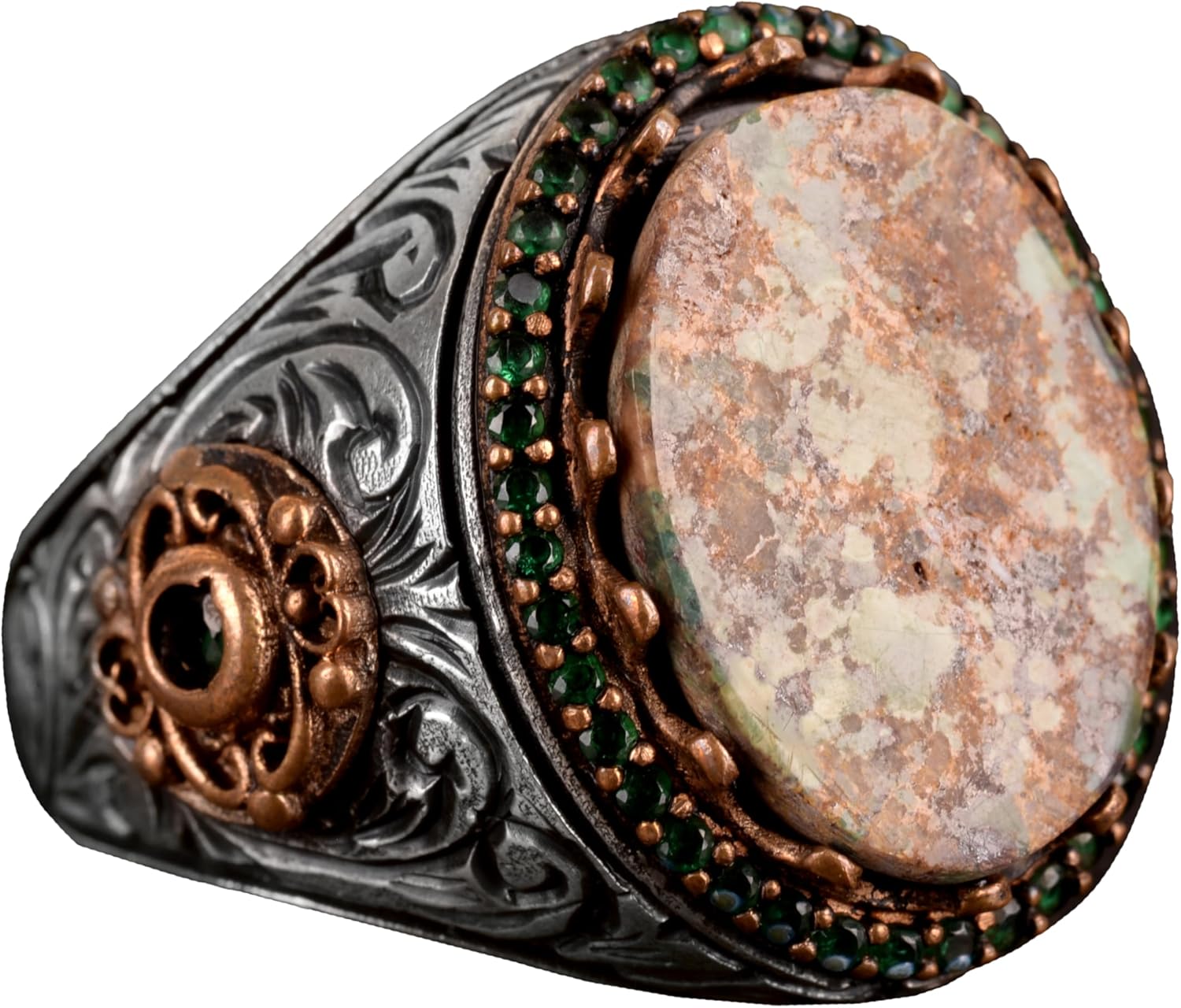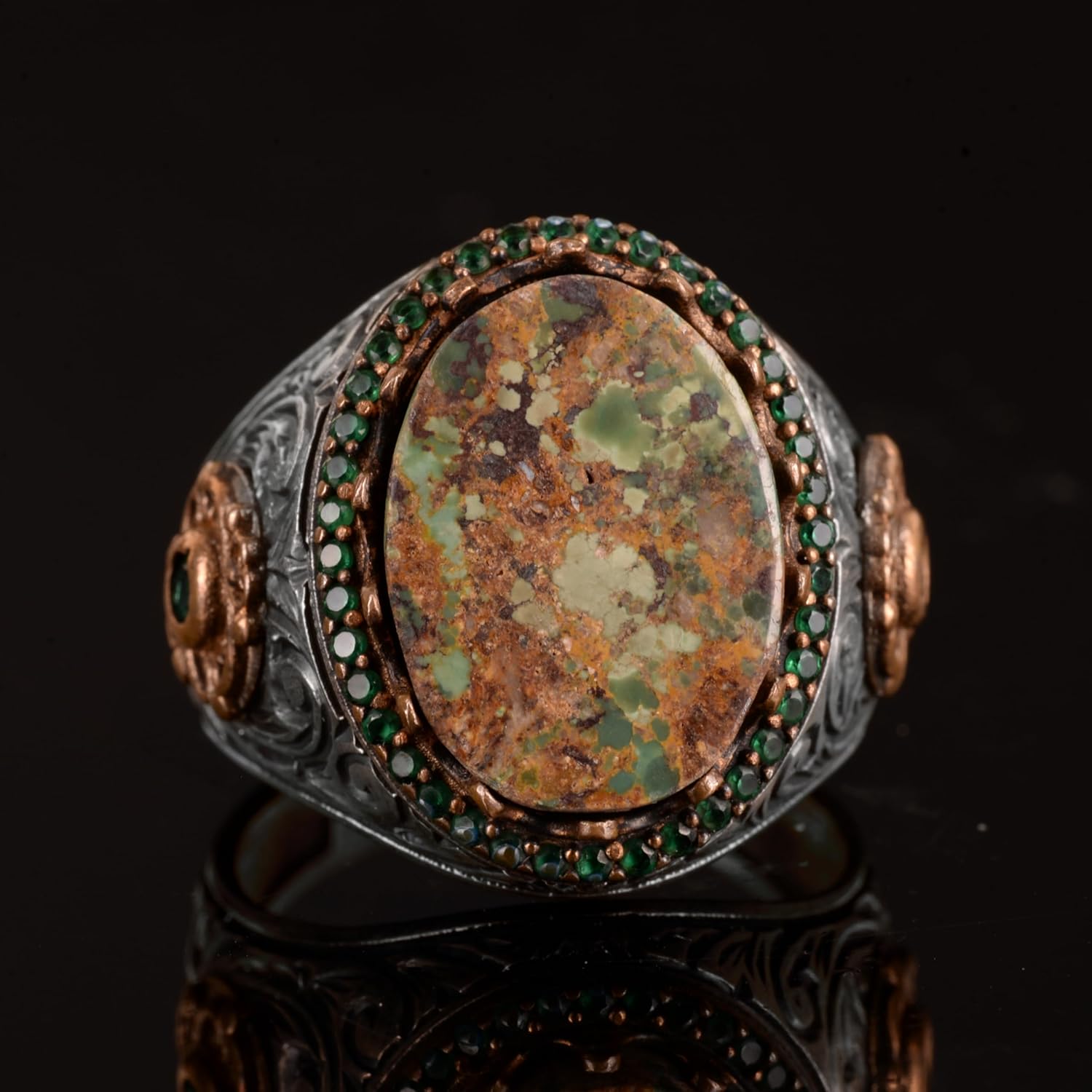 Erkek El Yapımı Gerçek Doğal Arizona Turkuaz Taş Yüzük, 925 Ayar Gümüş Yüzük, Sultan Yüzük
