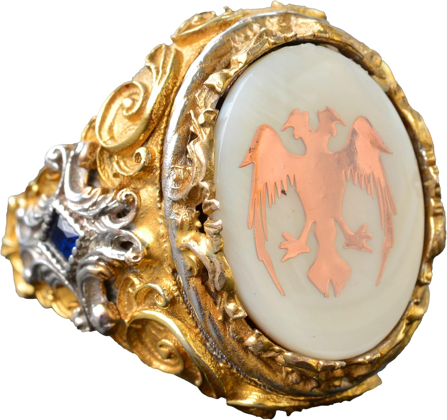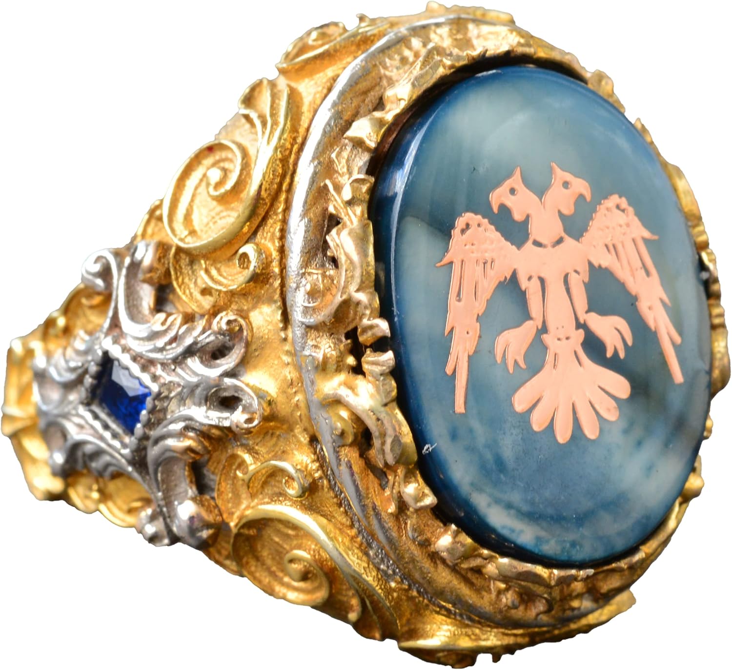 Erkek Gümüş İki Başlı Kartal Yüzük - Arnavut Kartalı Tasarımı, Altın Kaplama
