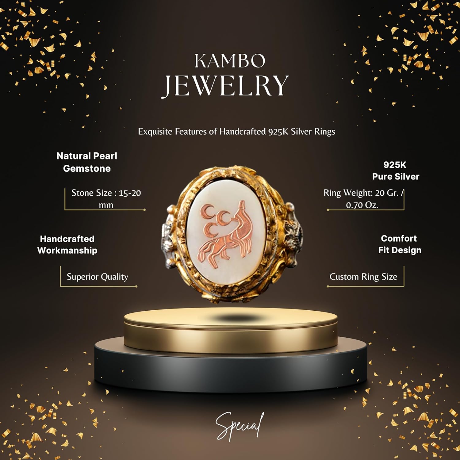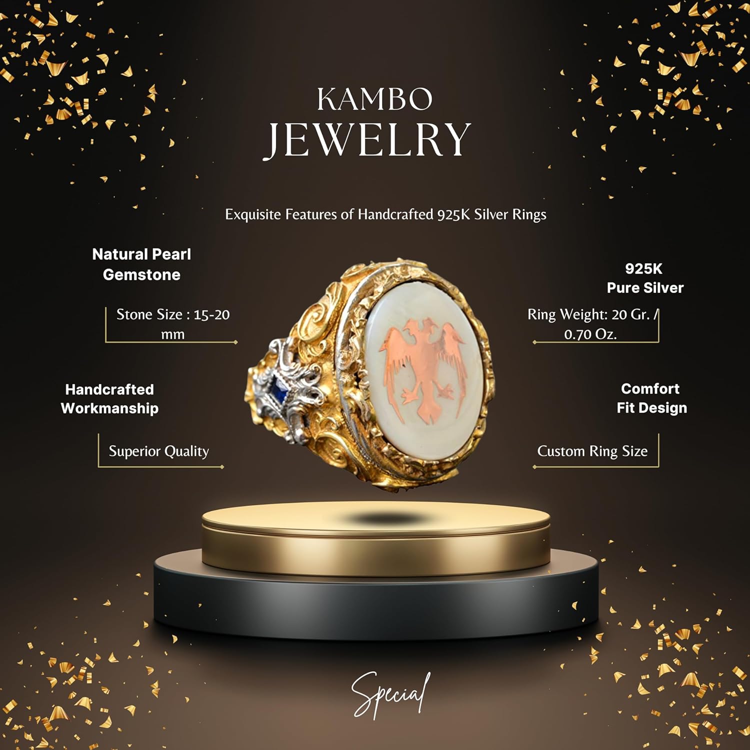 Erkek Gümüş Yüzük - İnci Taşı - Yüzük (Çift Başlı Kartal)