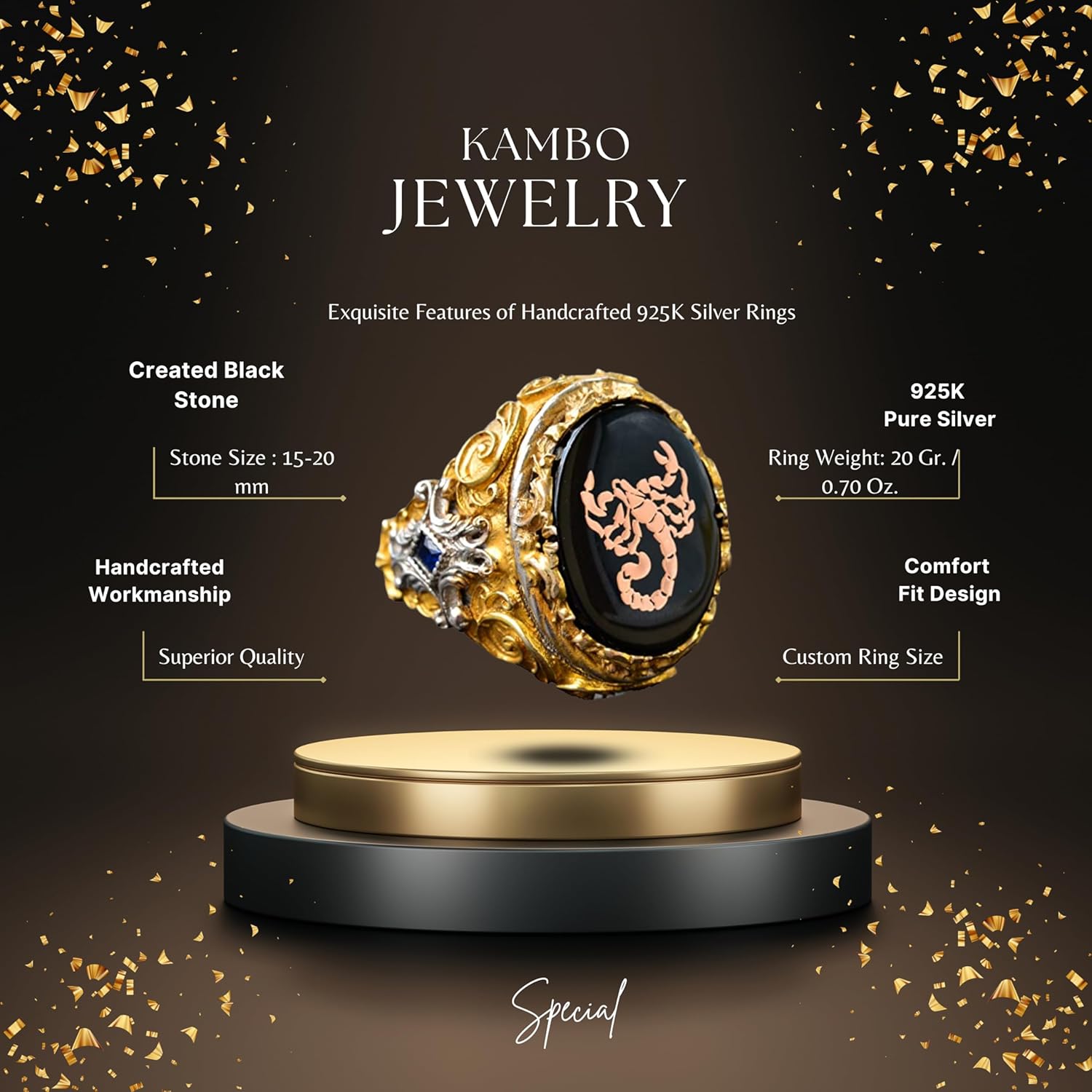 Erkek Gümüş Yüzük - Altın Kaplama Yüzük - Damgalı Yüzük (Akrep)