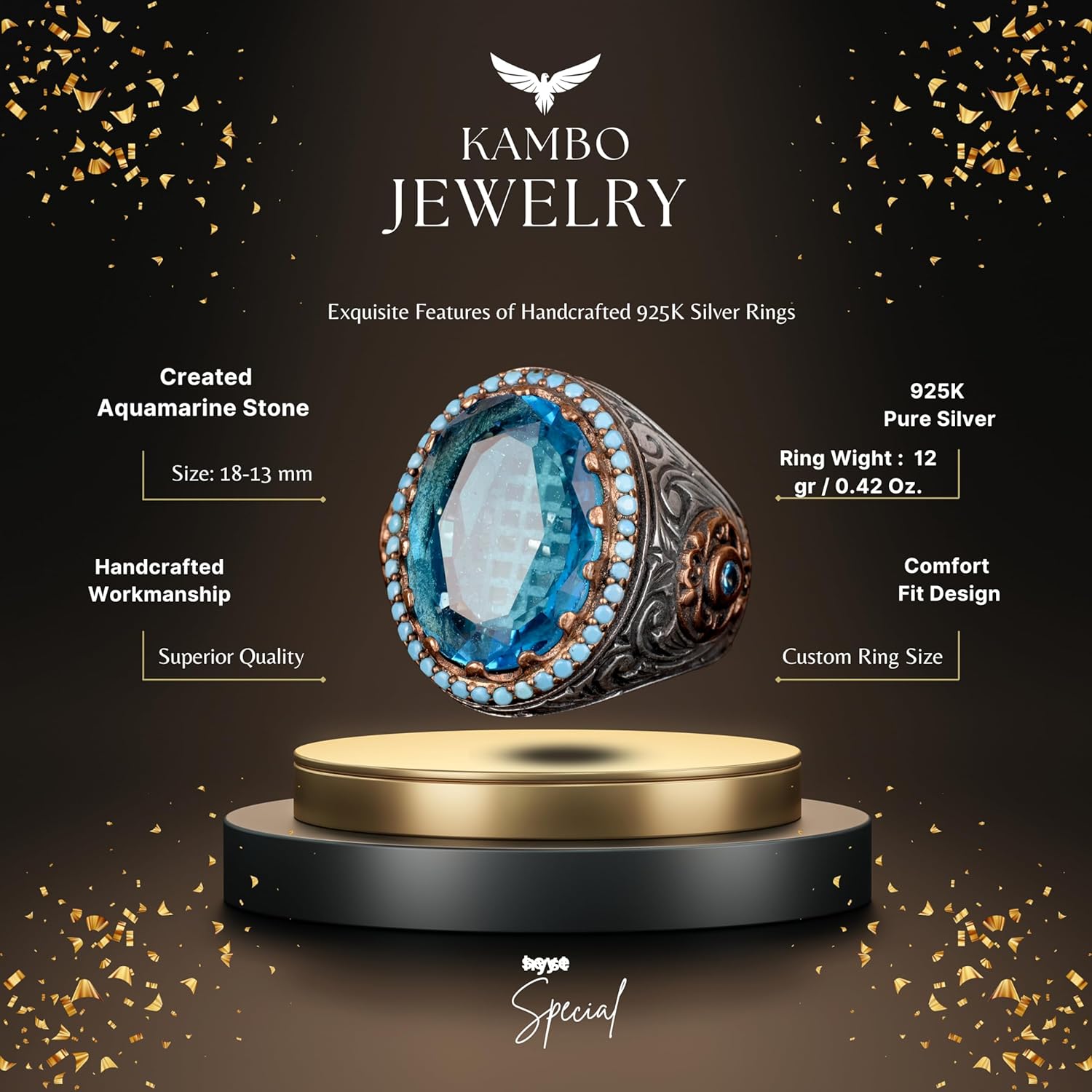 Erkek Gümüş Yüzük, Akuamarin zirkon Taş, Kral Yüzük, Erkek Yüzük