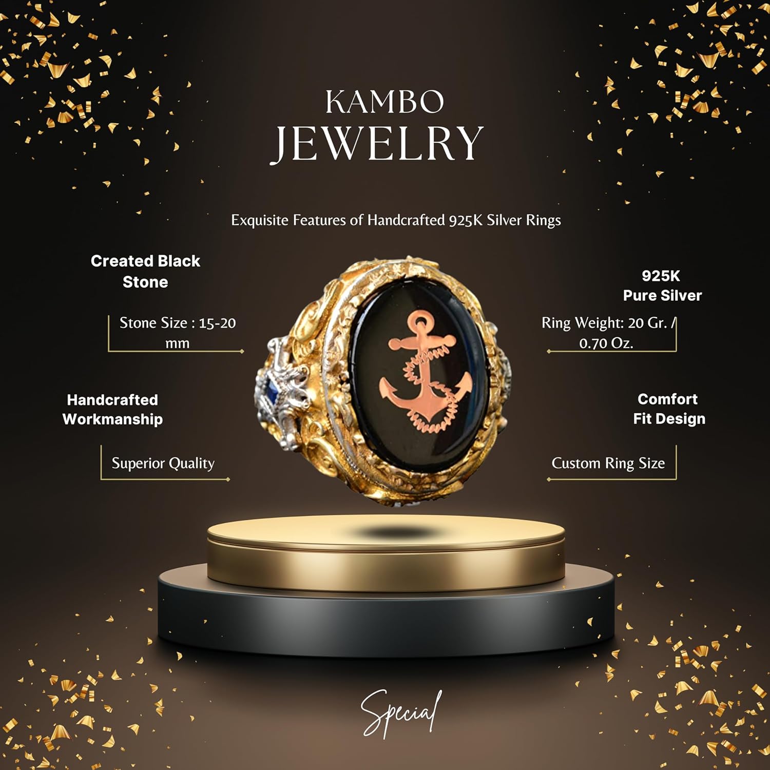 Erkek Gümüş Yüzük - Altın Kaplama Yüzük - Mühür Yüzüğü (Gemi İskelesi)