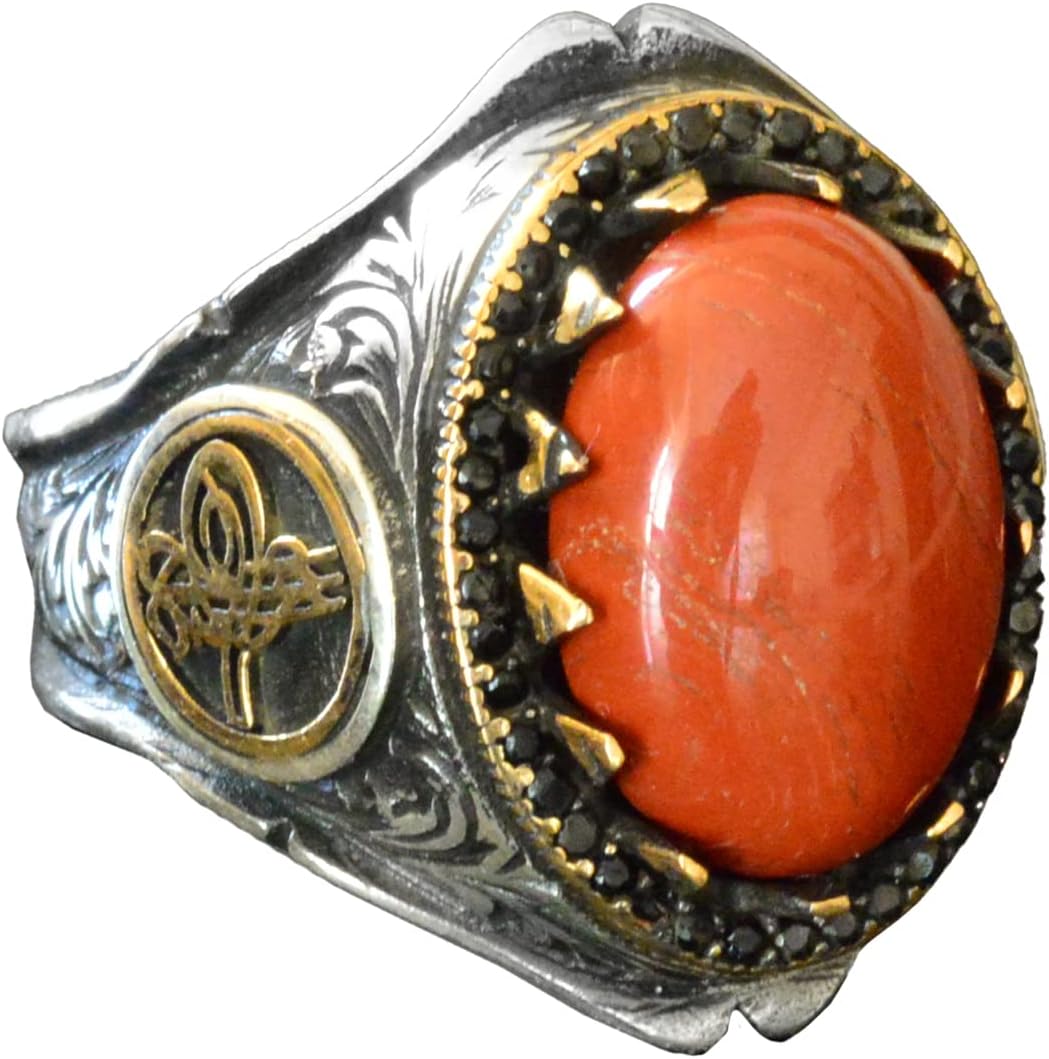 Erkekler için 925 Ayar Gümüş Yüzük - Doğal Kan Taşı Yüzük